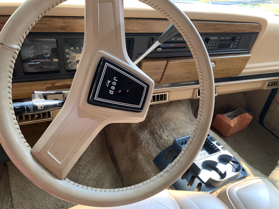This well preserved, vintage 1991 Jeep Grand Wagoneer has been garaged for 30 years, meticulously cared for, kept in its original colors, and was used as a White House car during the first Bush (George H