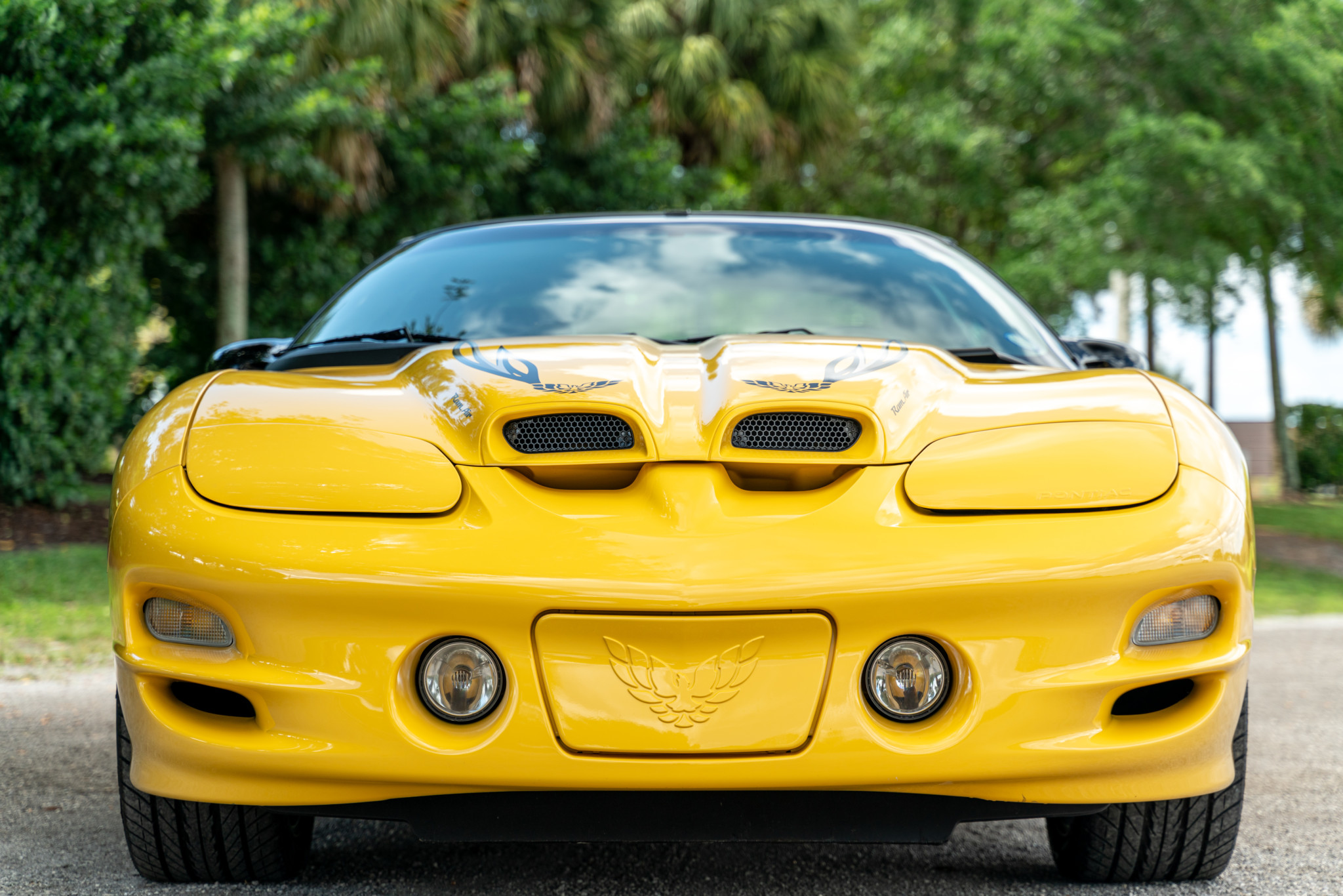 Black five-spoke 17″ alloy wheels wear 275/40ZR Goodyear Eagle F1 tires. The WS6 package featured a tuned suspension and a functional Ram Air induction hood.
