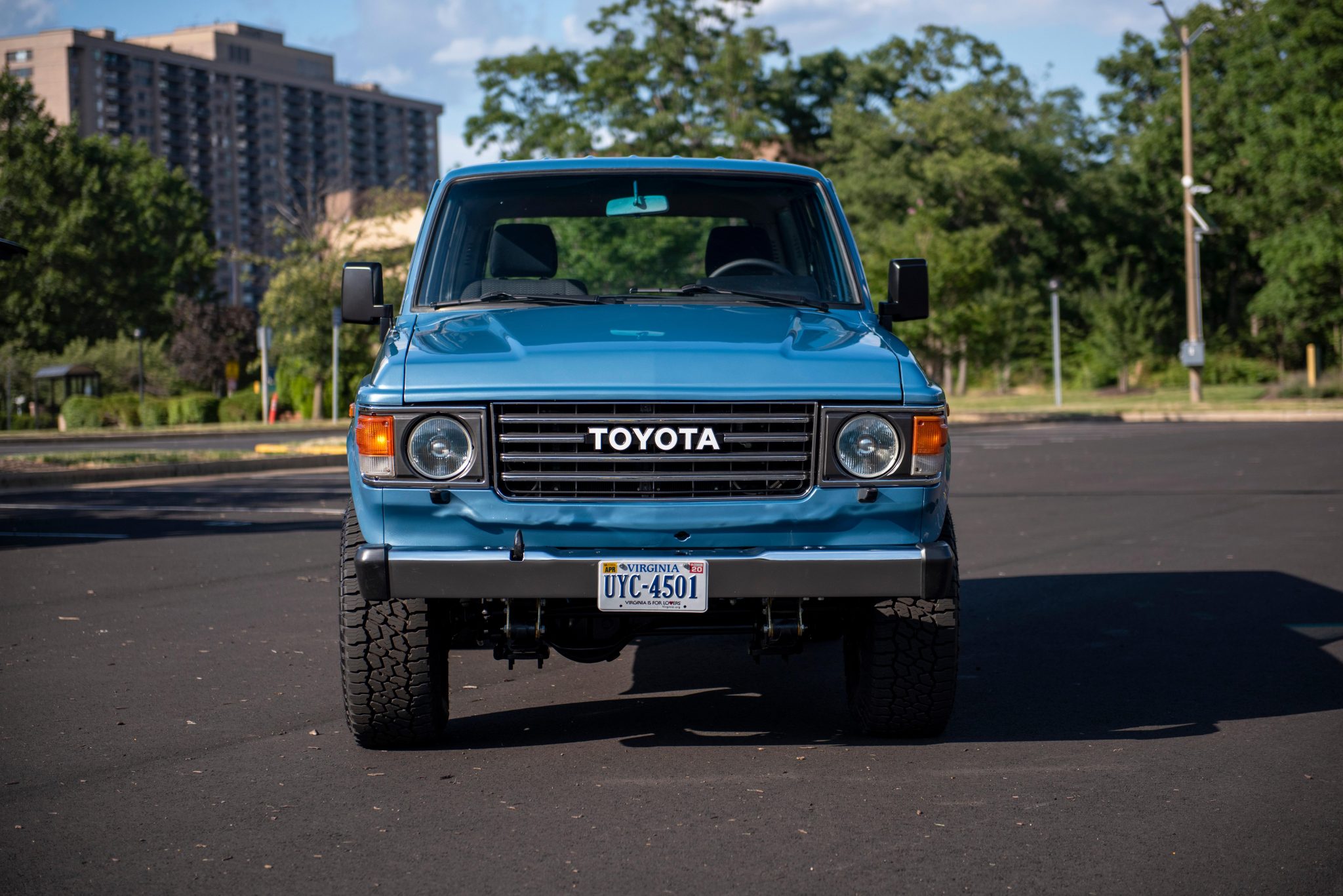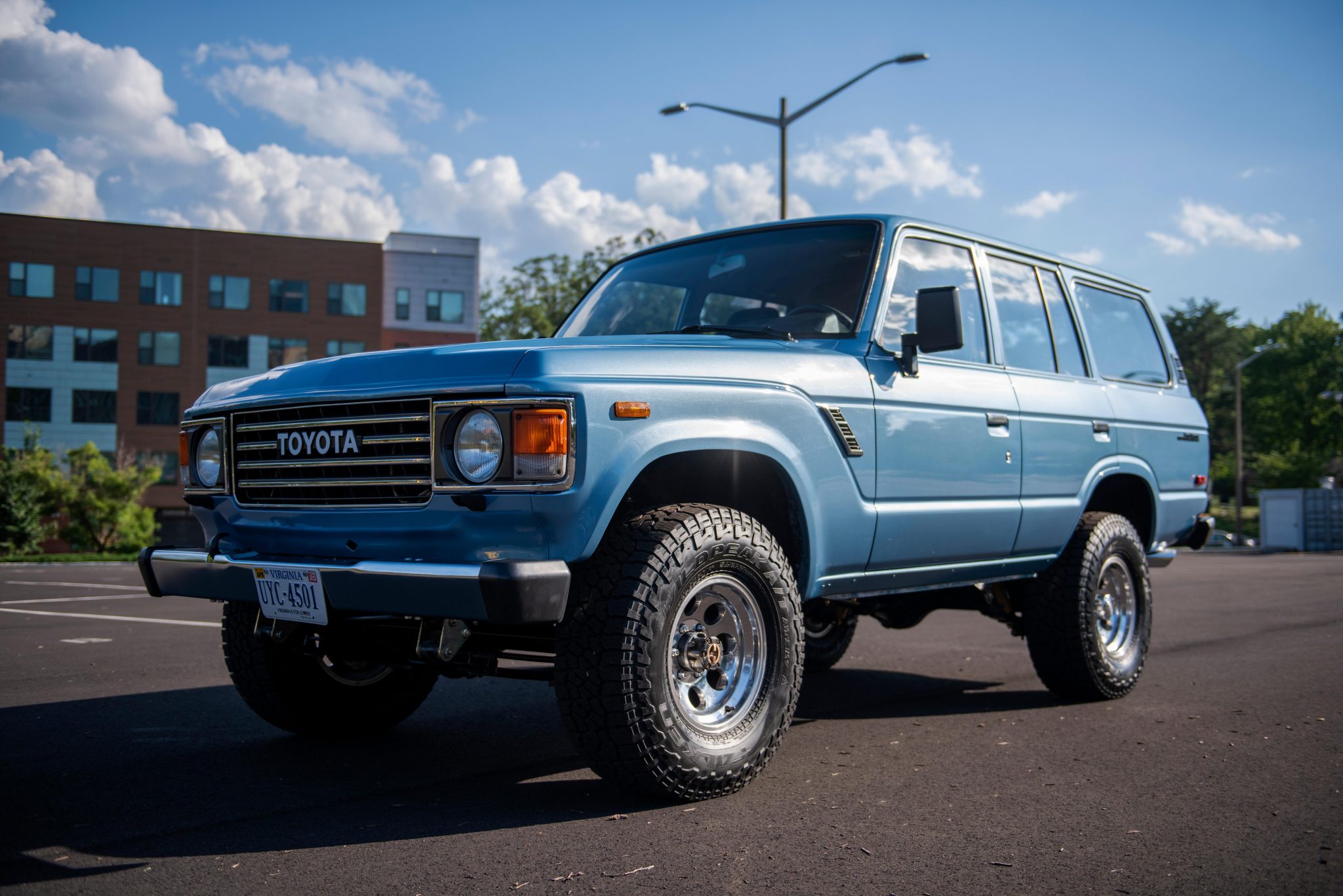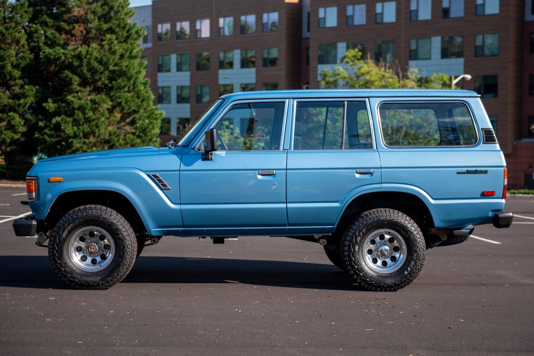 Polished 15″x8″ Ultra Type 164 wheels are mounted with 32″ Falken Wildpeak A/T3W tires at each corner. The braking system was refreshed with a Land Cruiser FJ80 brake booster, as well as a replacement of the master cylinder, lines, rotors, pads, and shoes. The suspension is raised 2.5″ using Old Man Emu components according to the seller.