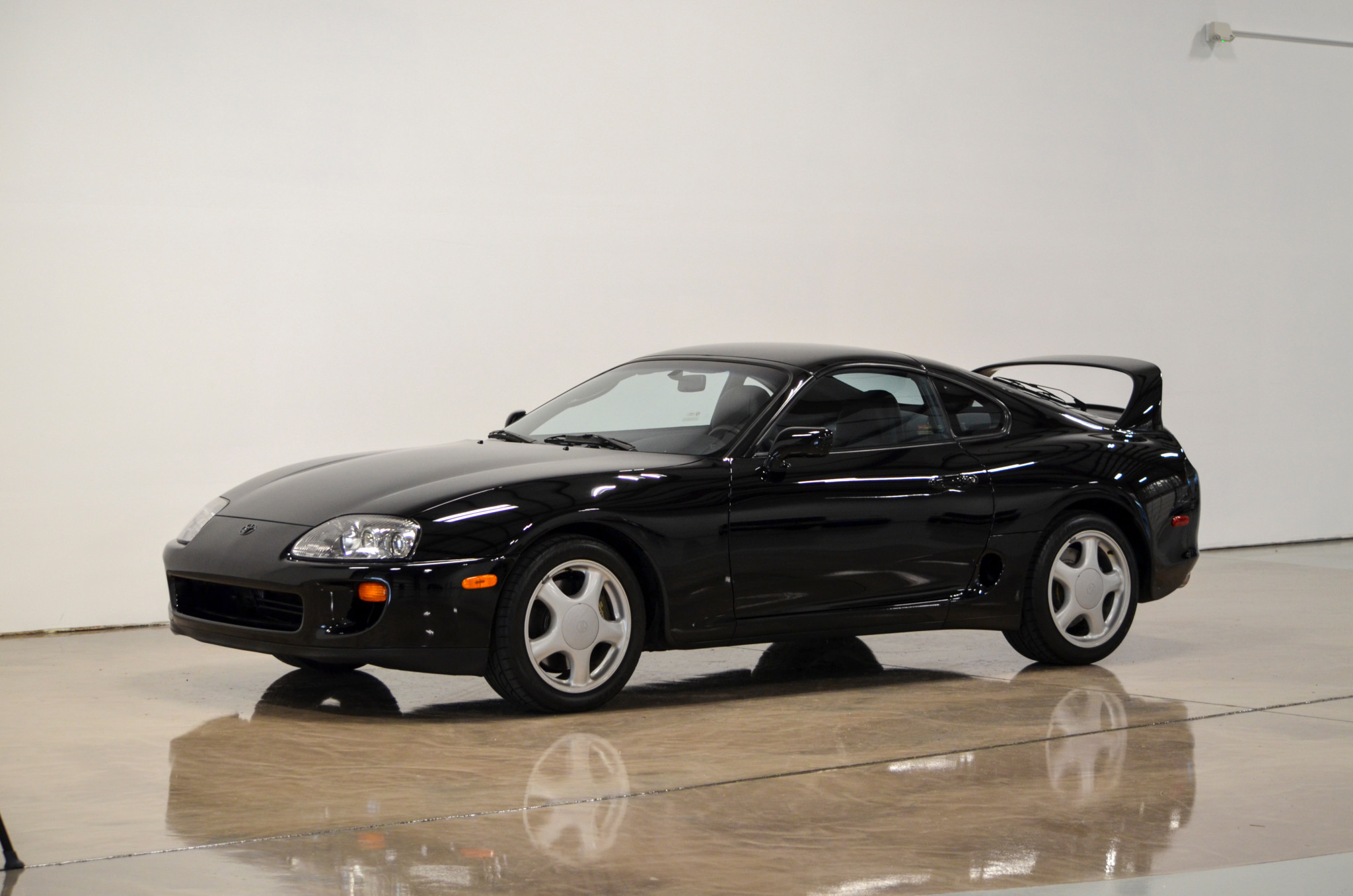 Factory 17″ alloy wheels are mounted with Bridgestone Potenza RE760 tires which show date codes from 2008. The braking system features four-wheel anti-lock ventilated discs and black calipers printed with Supra-script lettering.
