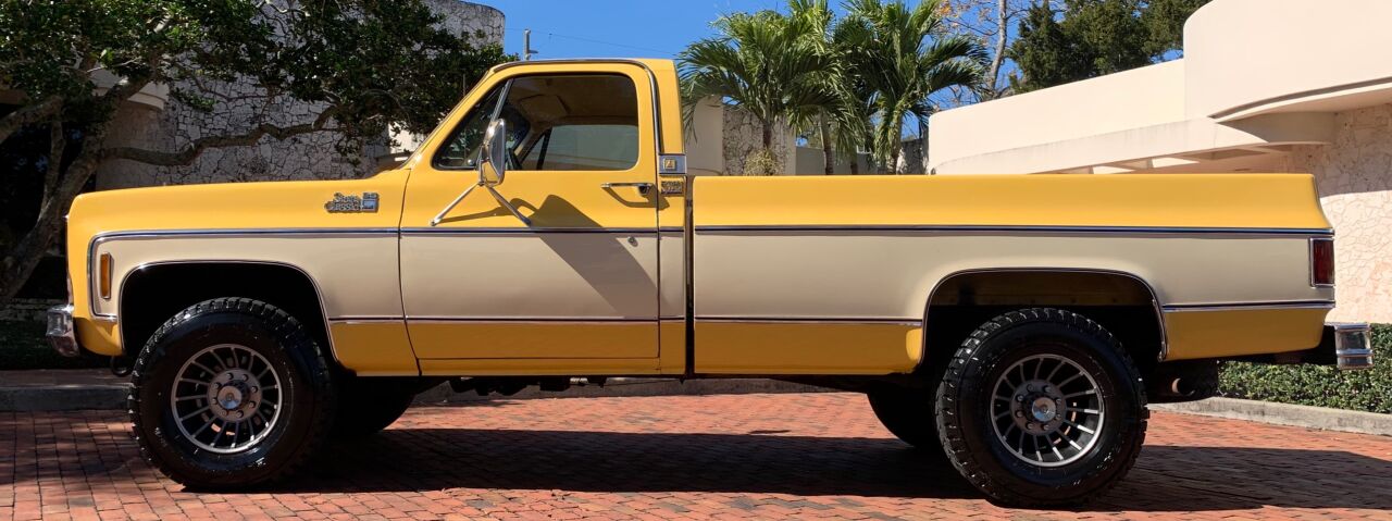 Period Superior turbine-style 16.5” wheels wear Eldorado ZR4 Radial LT tires. The spare wheel is mounted on the underside of the truck, and the factory steel wheels and hub caps are included in the sale.