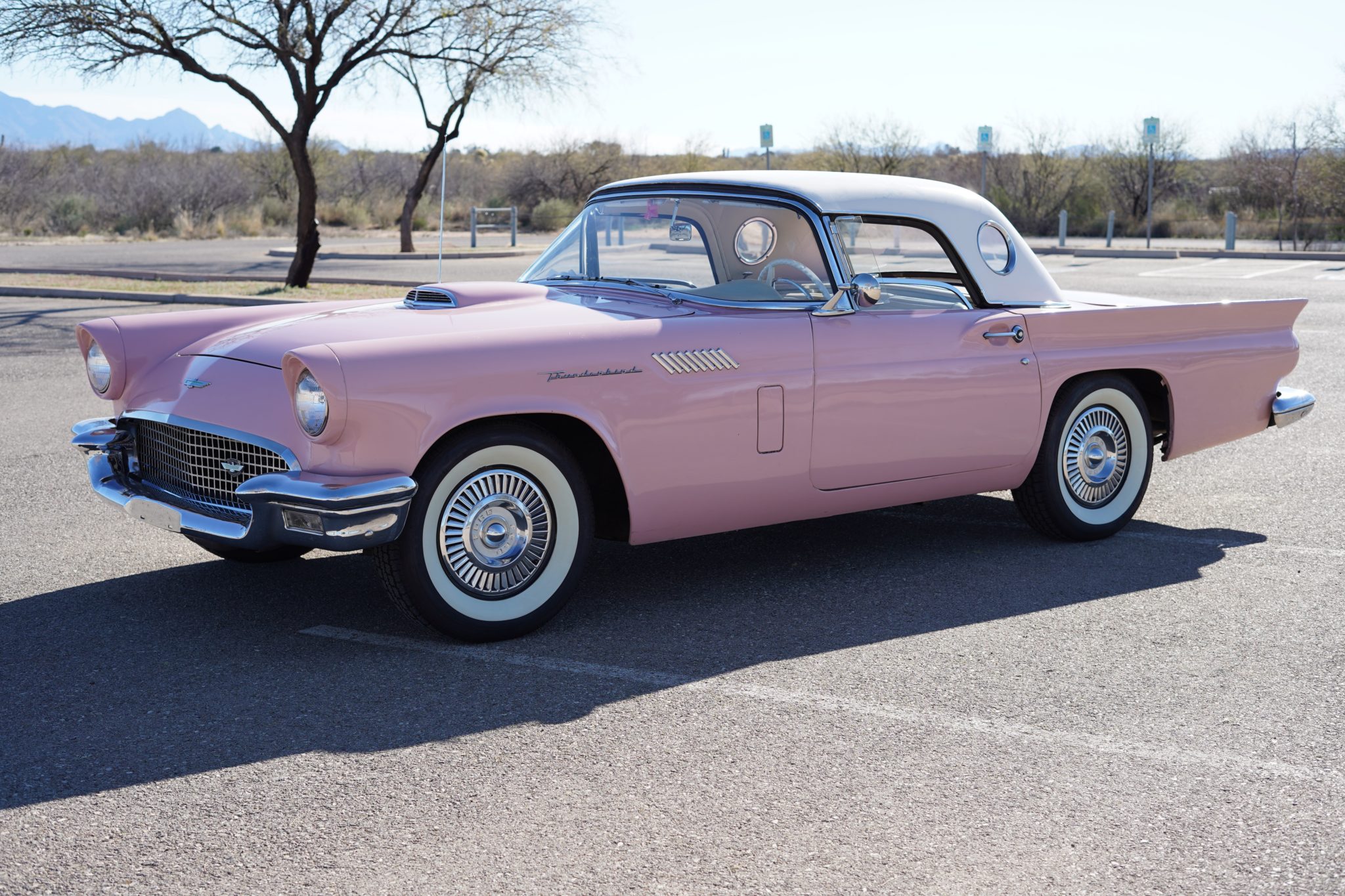 Black 14″ steel wheels wear chrome covers and American Classic wide-whitewall tires with 2010 date codes. The shocks and suspension bushings were replaced and the brakes serviced in 2015 according to the seller.