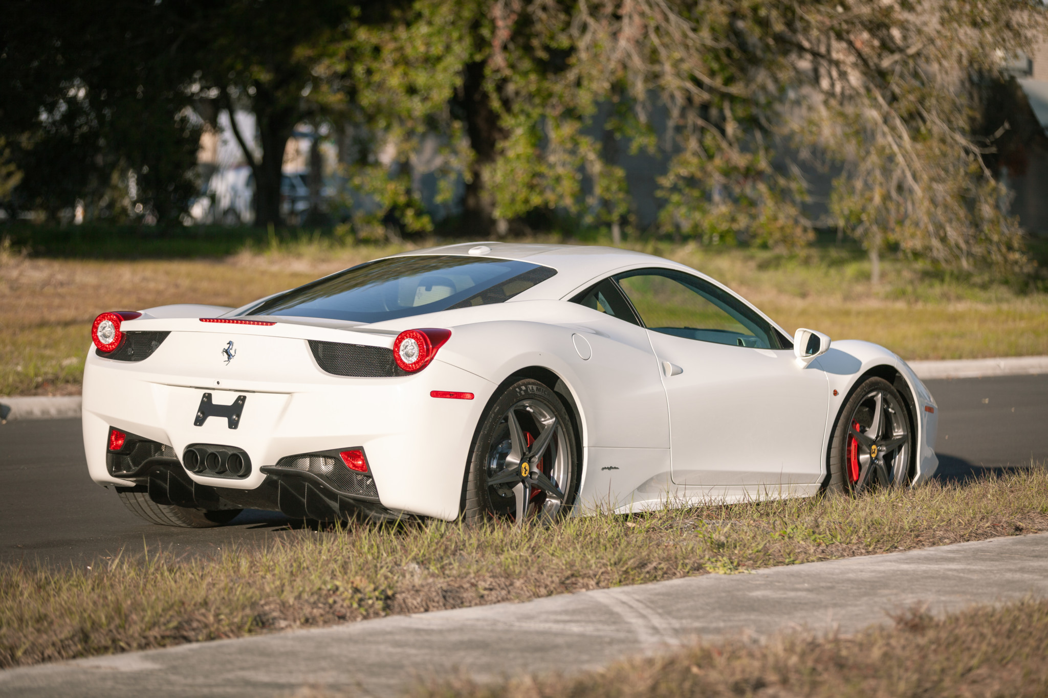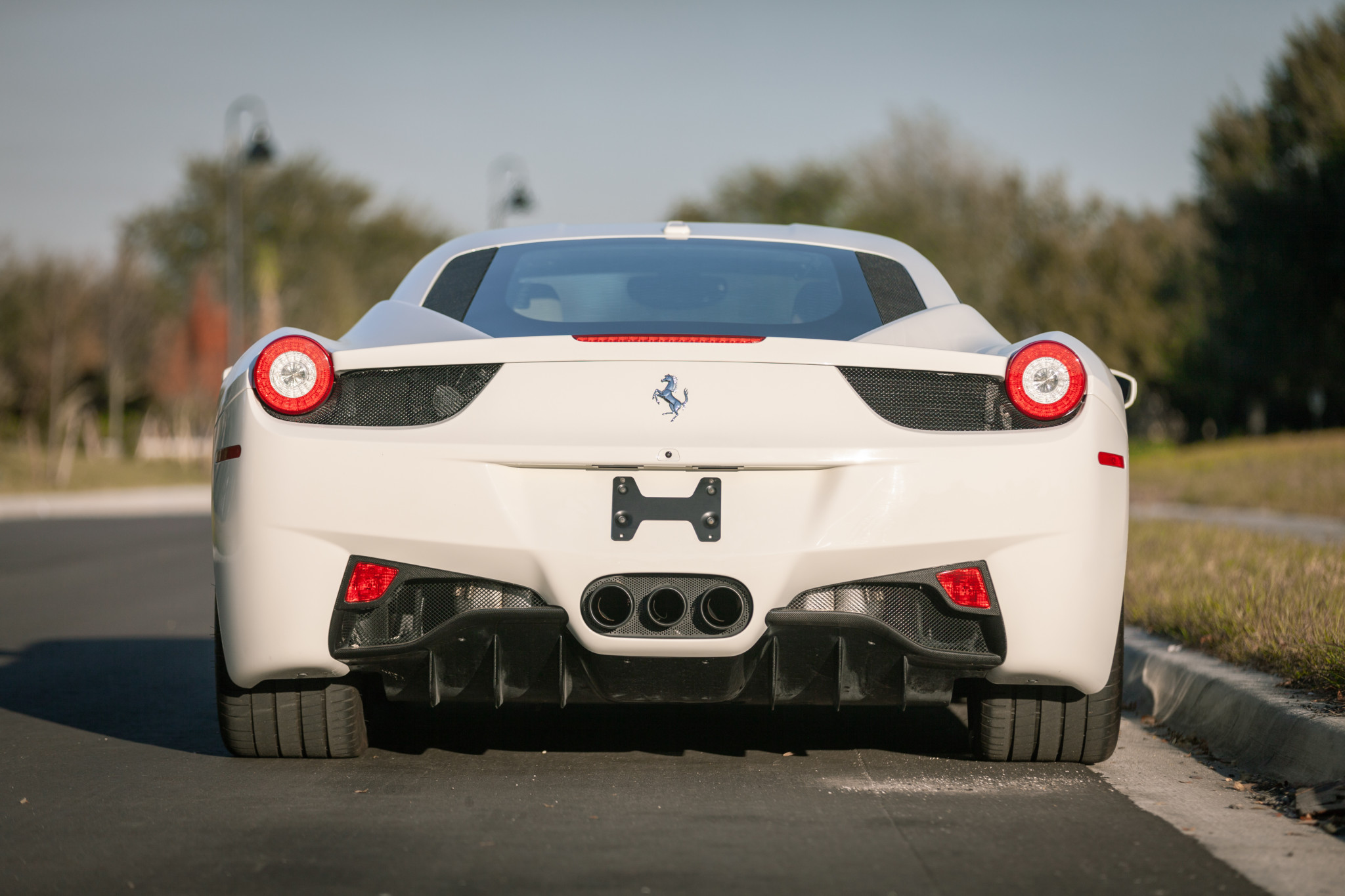 Five-spoke 20″ wheels are mounted with 235/35 front and 295/35 rear Michelin Pilot Super Sport K1 tires. Braking is handled by carbon-ceramic rotors paired with red six- and four-piston calipers, and an adaptive suspension system came standard.