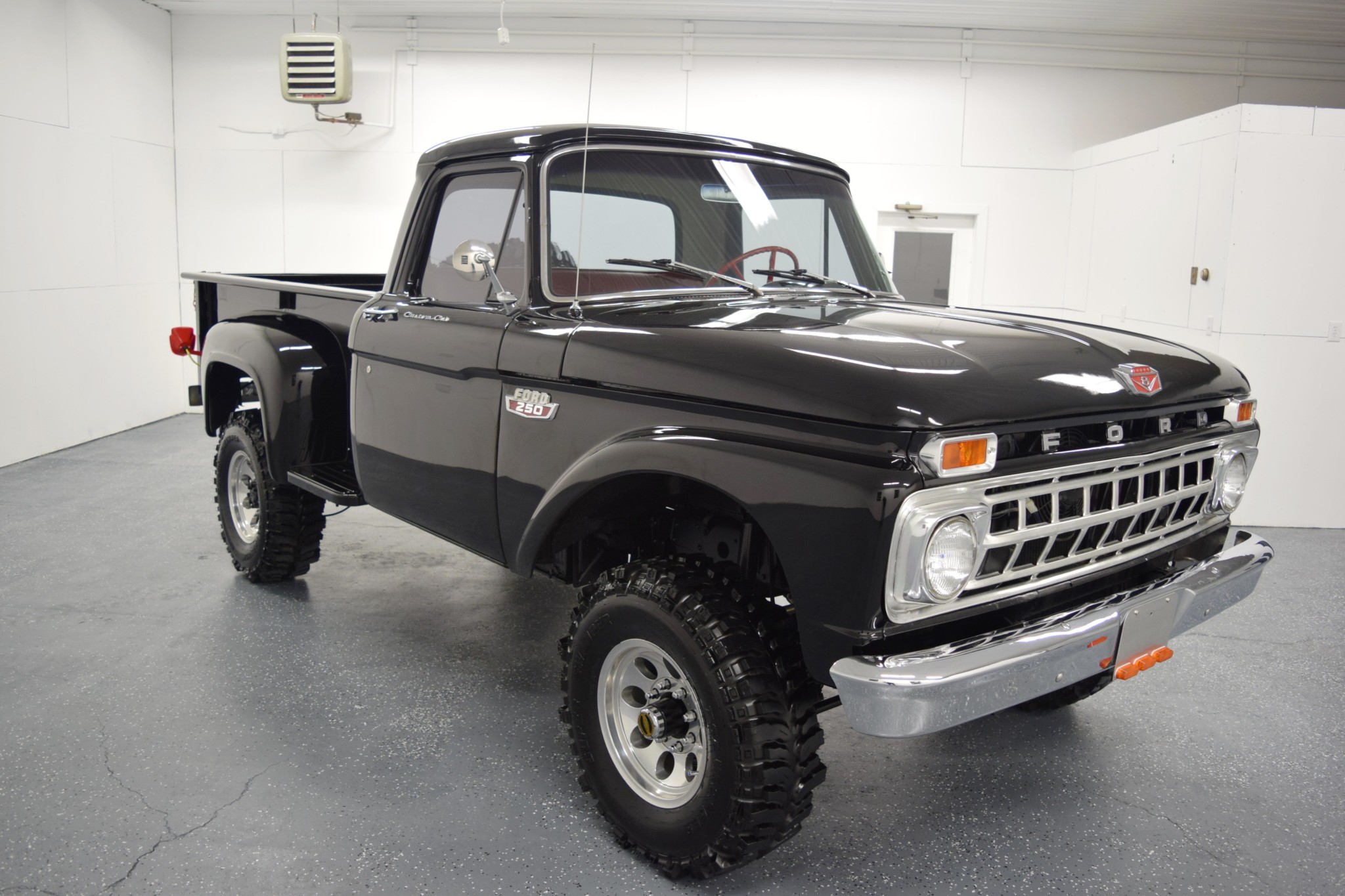 Aluminum 16″ Mickey Thompson wheels wear 33″ TSL Super Swamper Bogger tires, including the matching spare mounted to a carrier in the bed. The truck is equipped with Warn manually-locking front hubs as well as a dual-stage master cylinder that were fitted by the selling dealer.