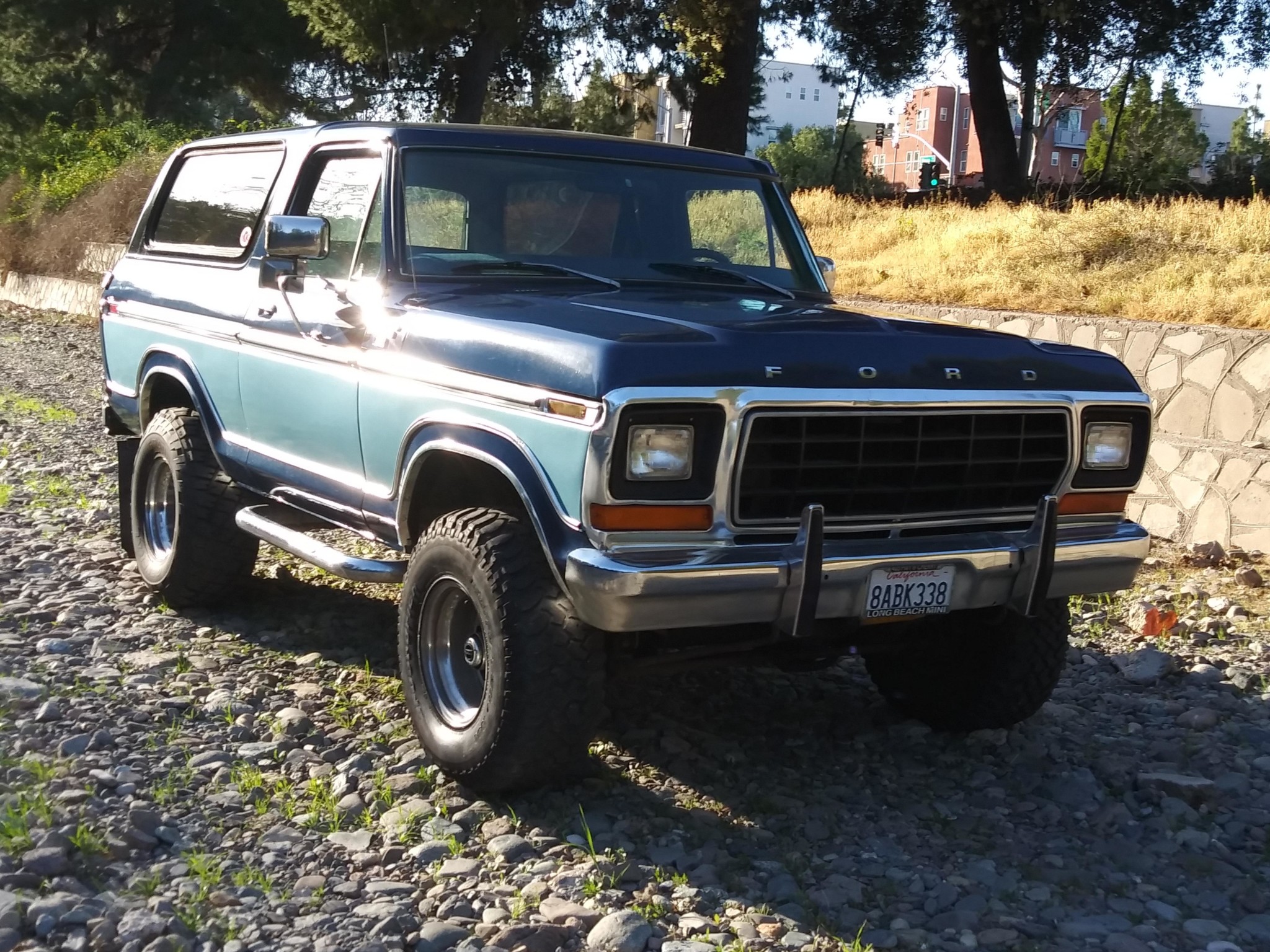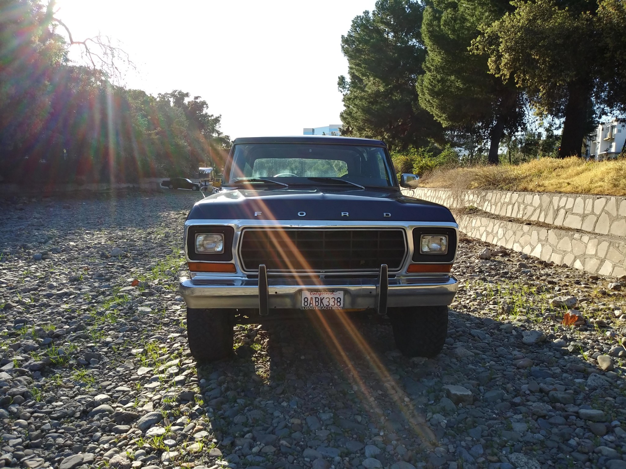 The truck has been lifted to clear 32″ BFGoodrich and General tires on Eagle wheels, while a smaller spare is mounted under a vinyl cover on the swing-out rear carrier. The truck is equipped with front disc and rear drum brakes as well as a steering damper.