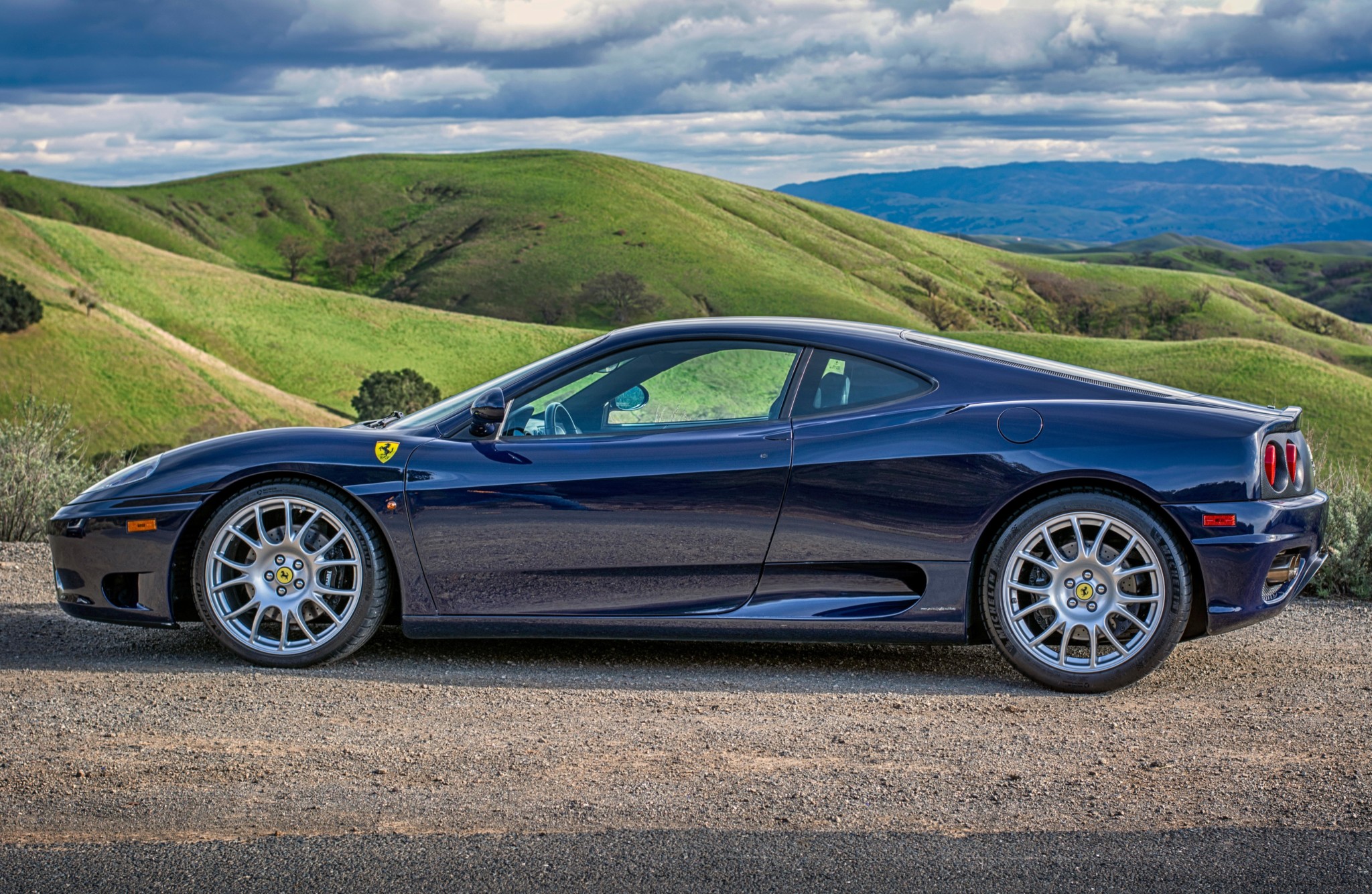 19″ Challenge wheels wear 235/35 front and 285/35 rear Michelin Pilot Sport 4 S tires installed in 2017 at 34k miles. The front brake pads were replaced and the rotors were resurfaced in November 2018. A four-wheel alignment was carried out at the same time, and new front ball joints were also installed along with new tie rod ends and passenger-side CV boots. The seller has added Ferrari fender shields and notes curb rash on one of the wheels.
