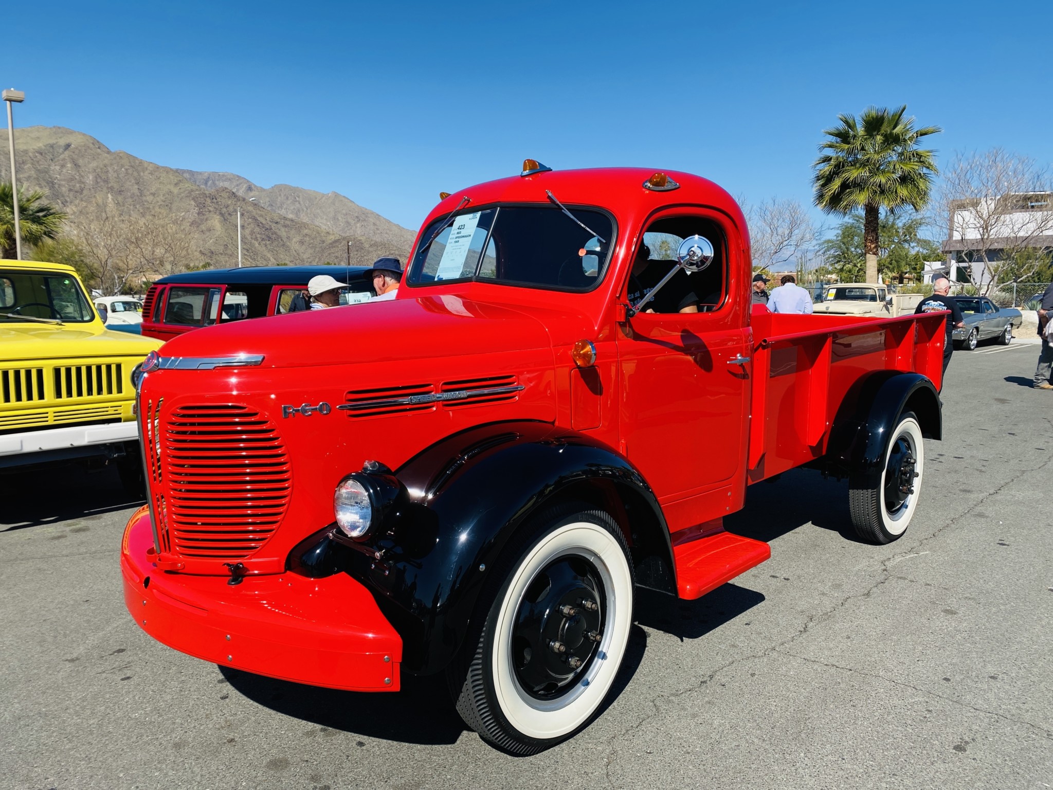 Black-painted five-lug 20″ steel wheels are mounted with BFGoodrich Silvertown wide whitewall tires, and one of the wheels shows a “12 48” stamping.
