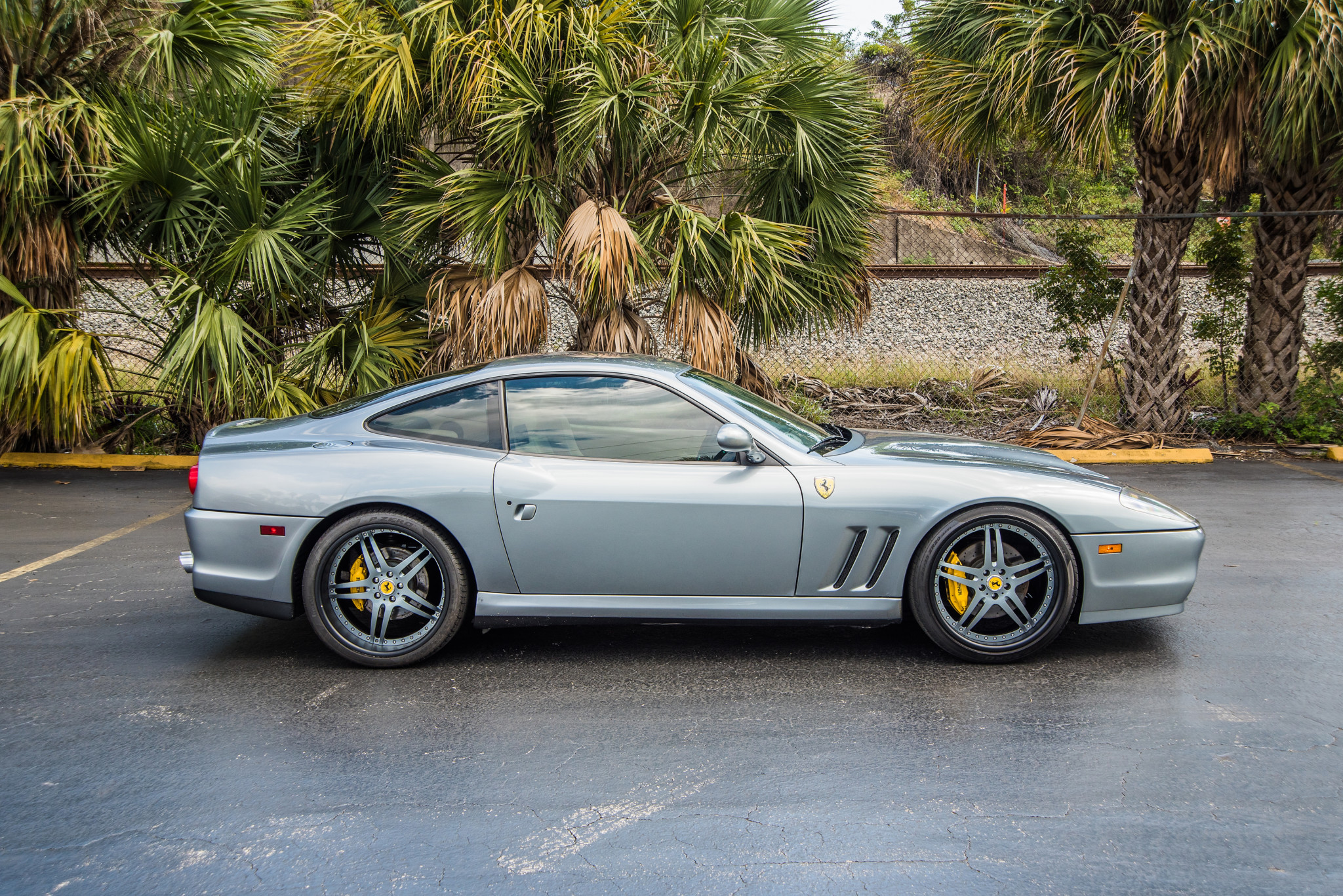 The seller states that the front of the car was damaged during the 2004 theft, and that the front bumper and right-front fender were subsequently repaired. The vehicle was in another collision in 2011 that resulted in replacement of the front bumper. Photos in the gallery show exterior blemishes, including a crack in the passenger-side mirror cover and yellowing in the clear wrap protection aft of the wheels.
