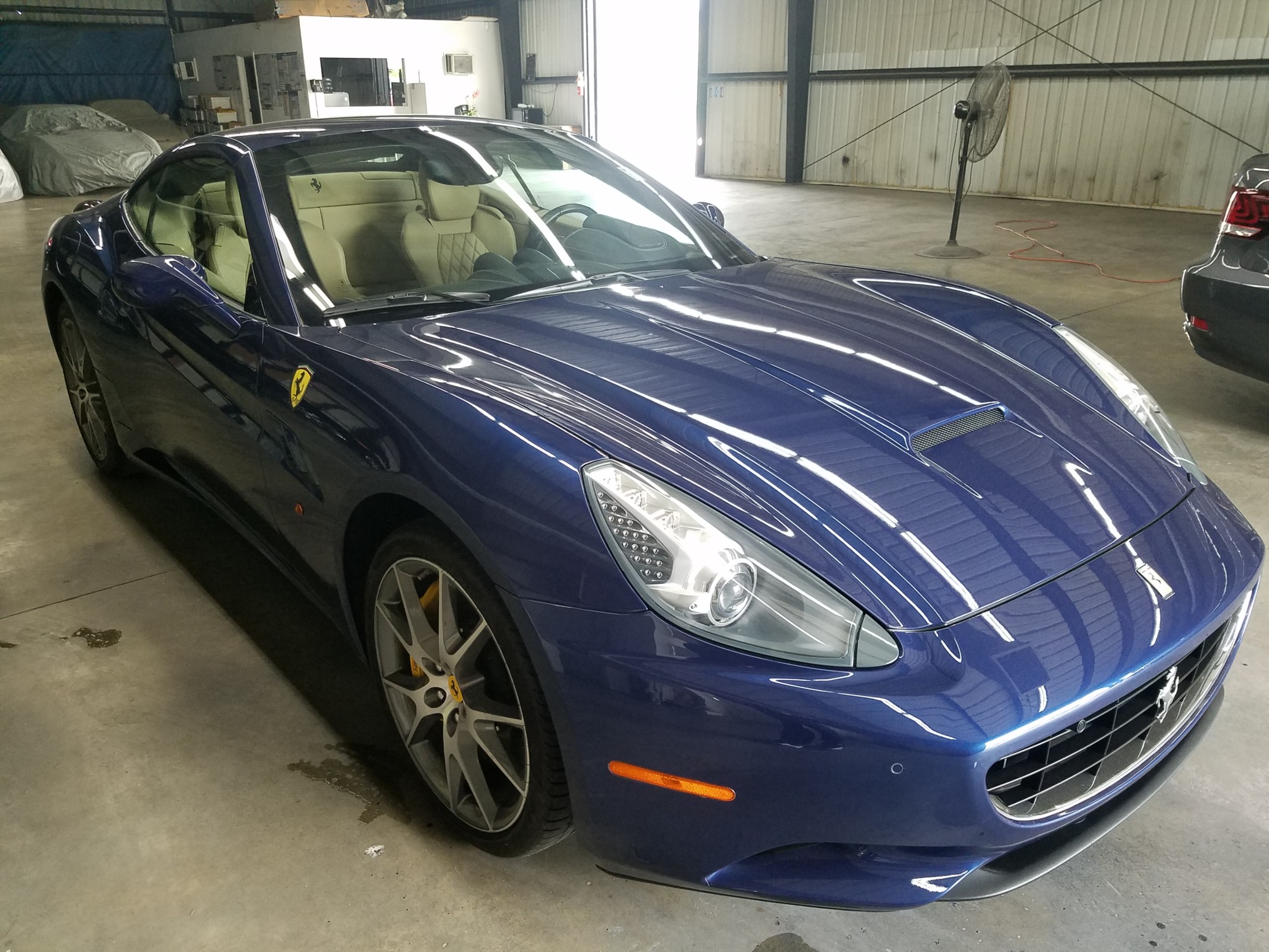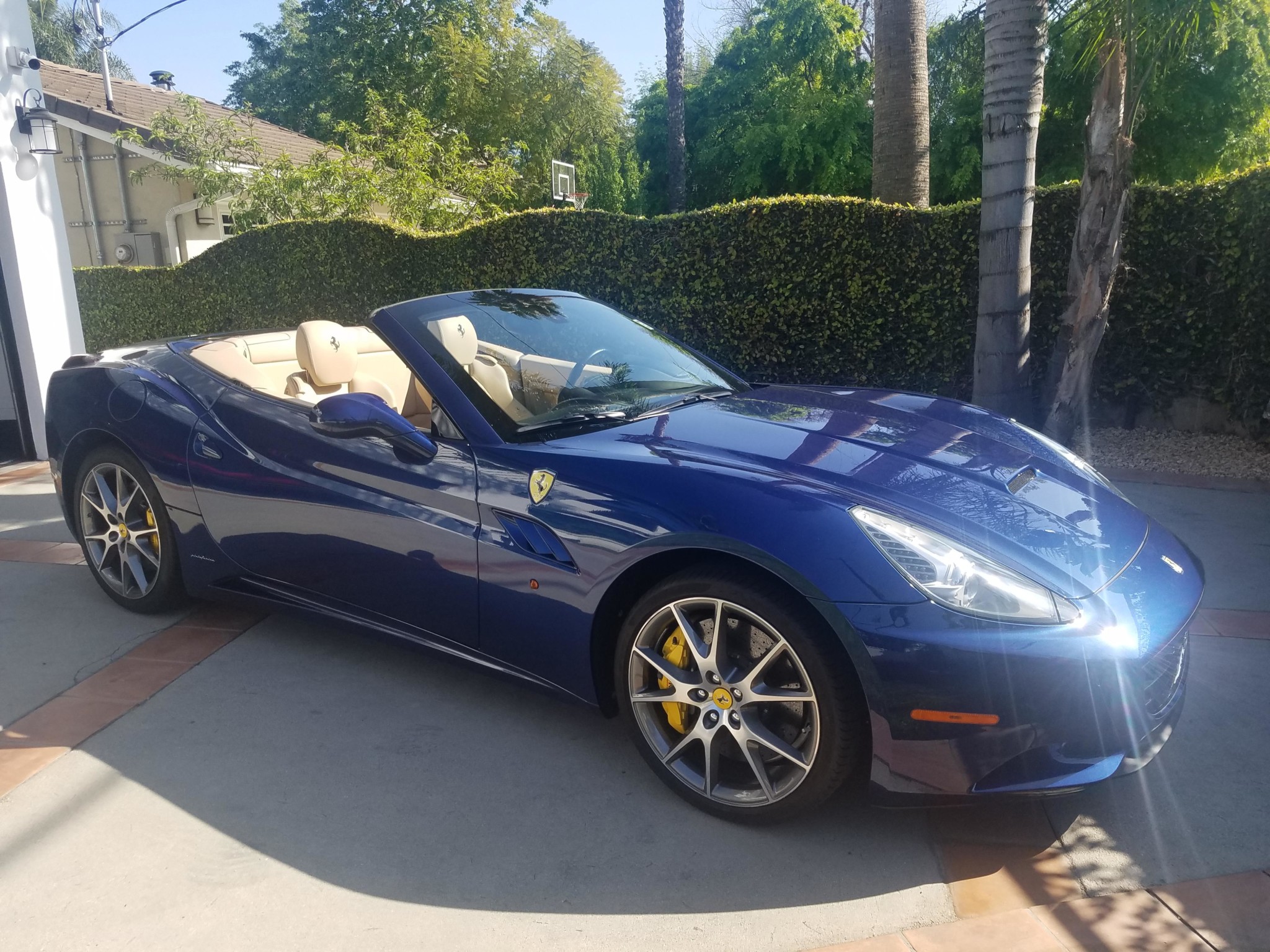 Factory 20″ alloy wheels wear prancing-horse center caps as well as Pirelli P Zero tires. Carbon-ceramic brake discs are paired with yellow calipers at each corner.