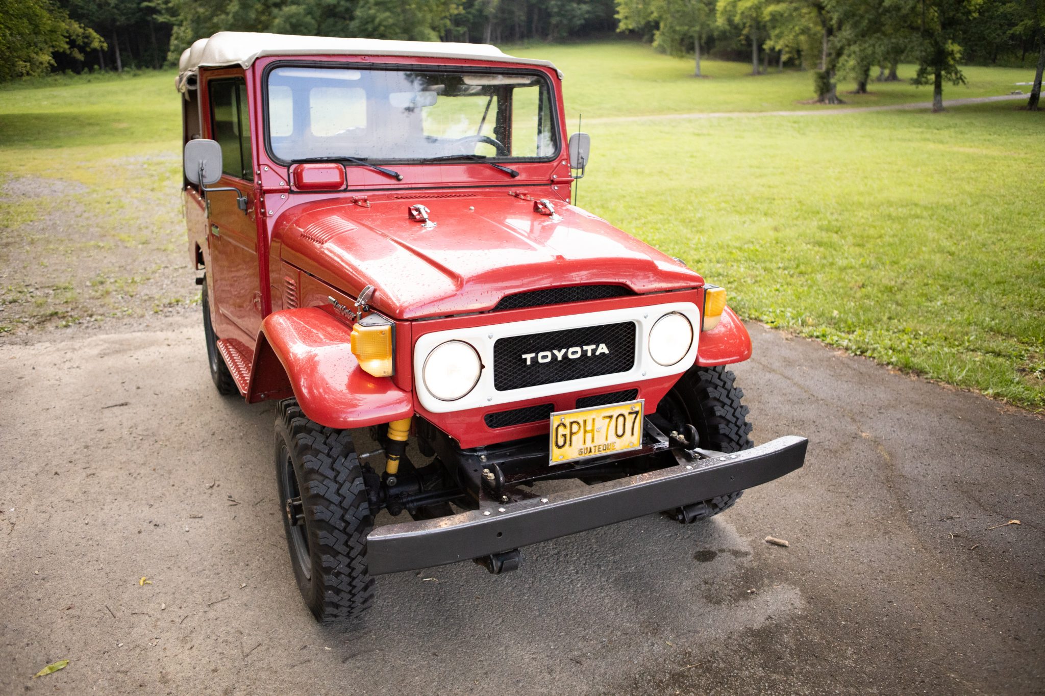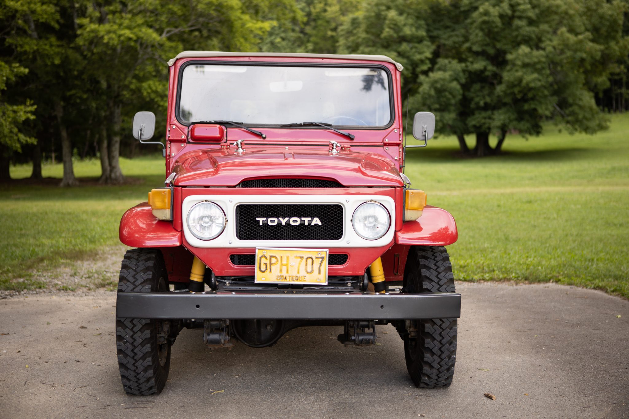 Steel 16″ wheels refinished in gray wear replacement 16″x6.5″ Cordillera Lima Caucho tires, and a matching spare is mounted to a swing-out carrier at the rear. Front manually-locking hubs are equipped, and the truck has been modified with power-assisted steering and front disc brakes. The selling dealer states that the suspension was also refurbished.