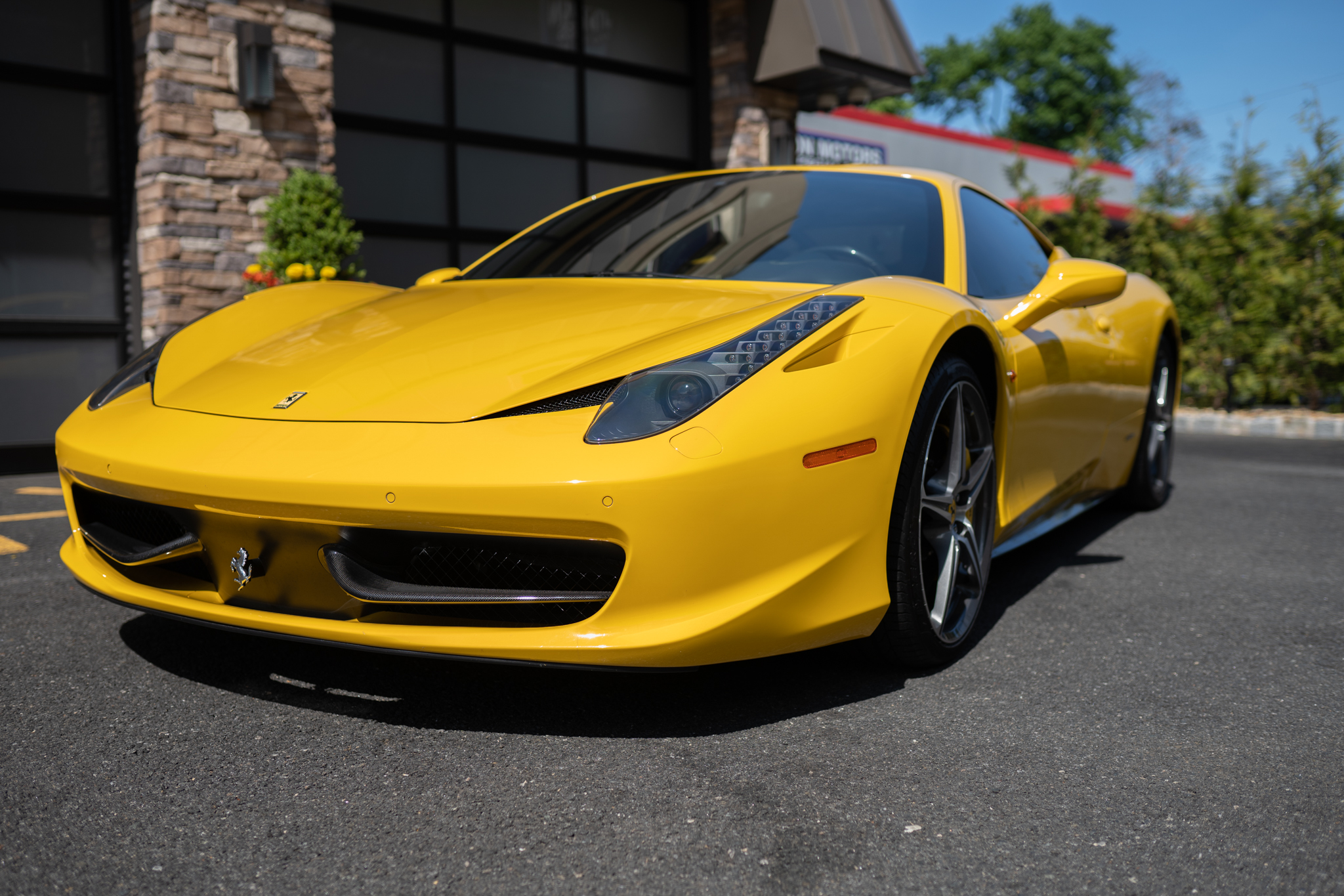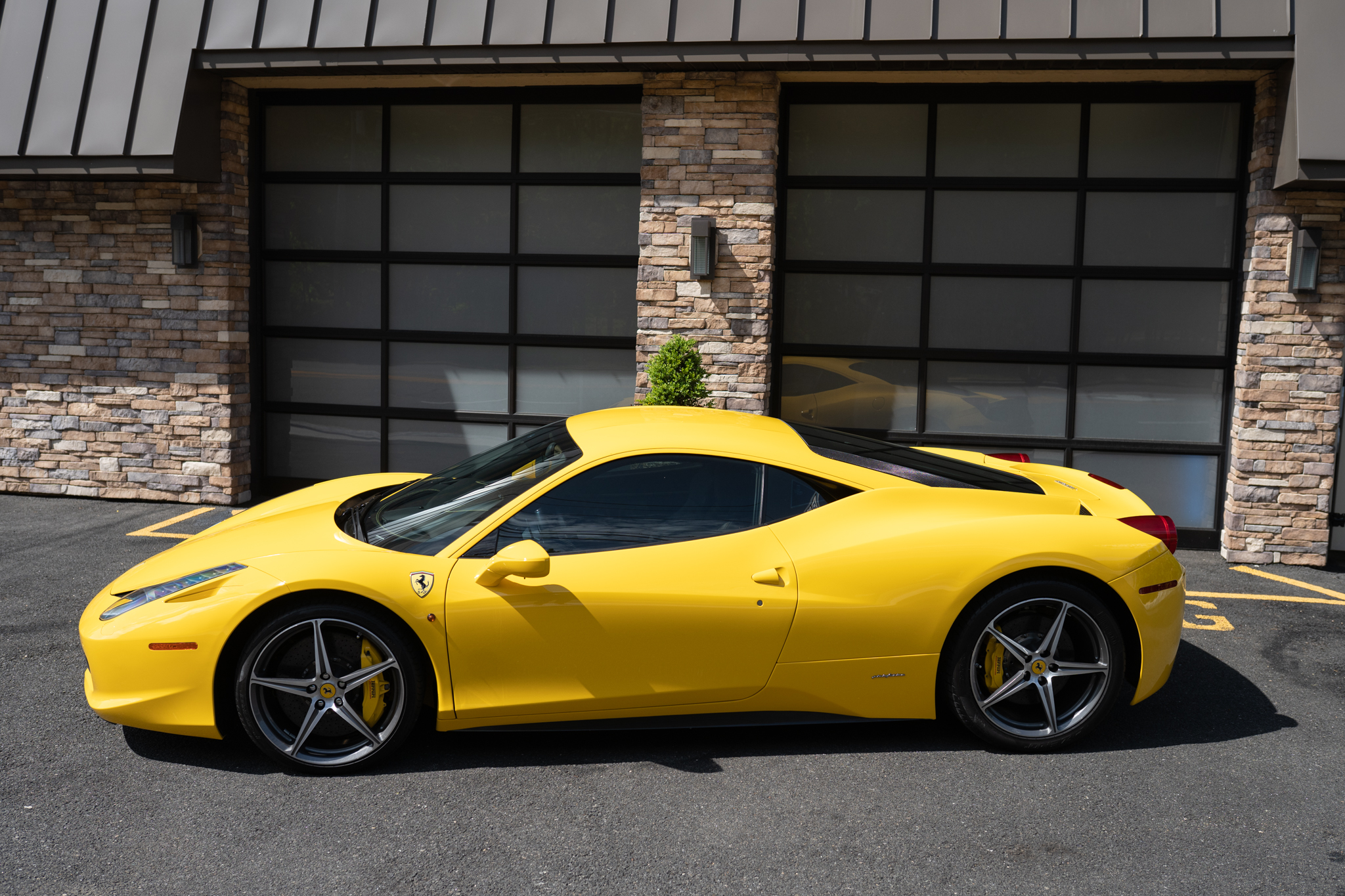 Optional 20″ Sport Diamond wheels are mounted with 235/35 front and 295/35 rear Pirelli P Zero tires. Magnetic suspension damping came standard, and braking is handled by carbon-ceramic rotors paired with yellow six- and four-piston calipers.