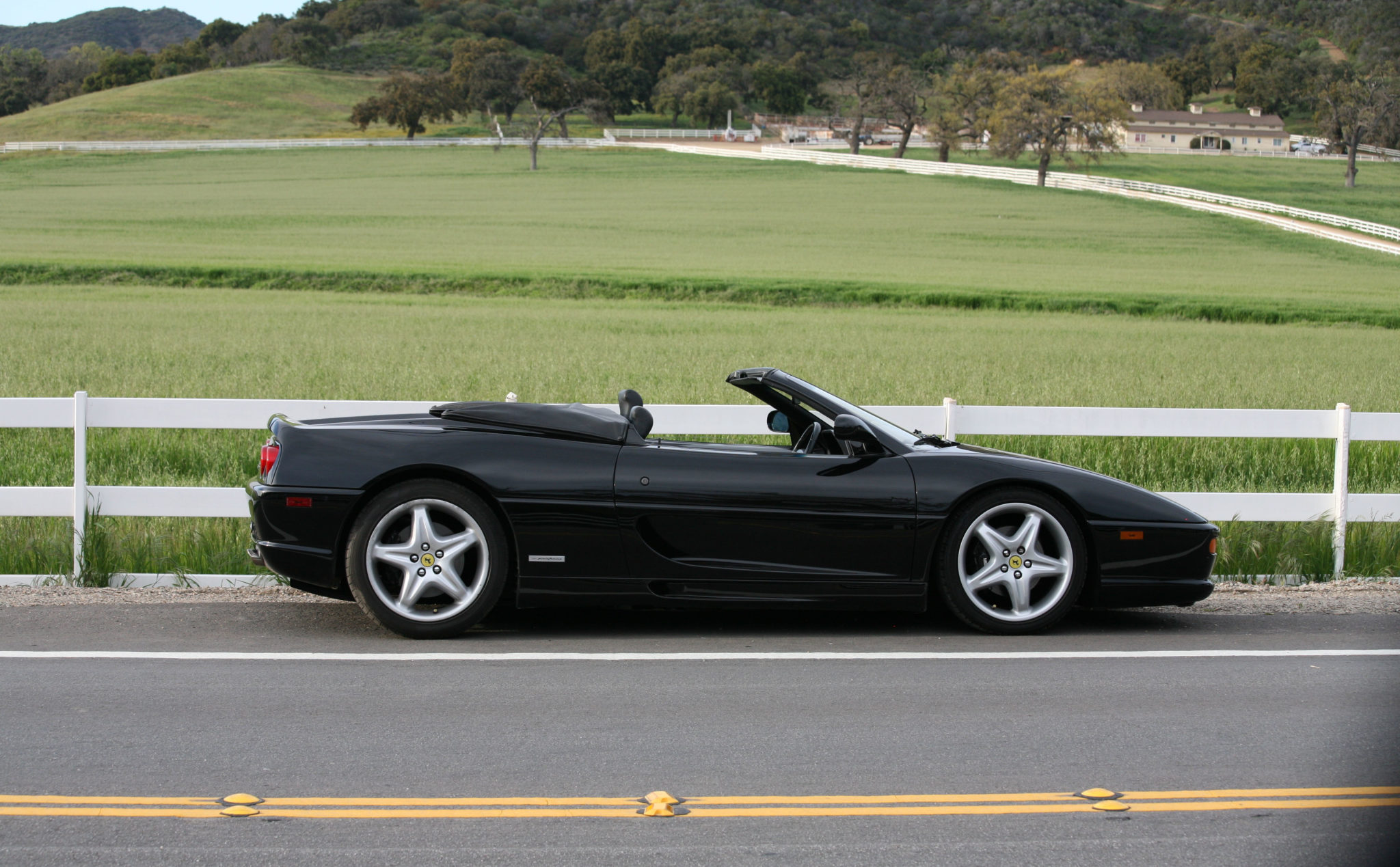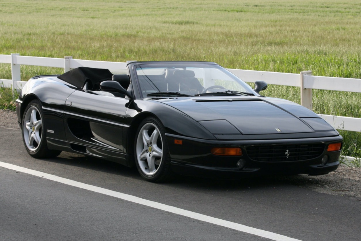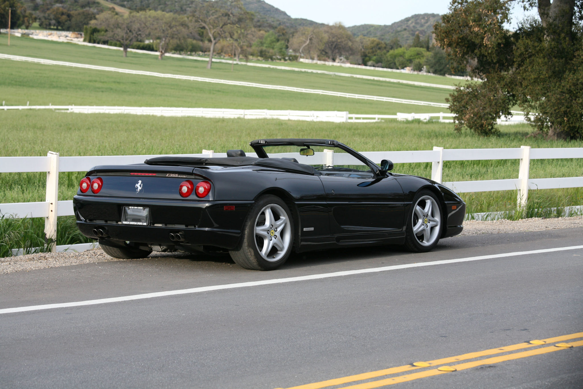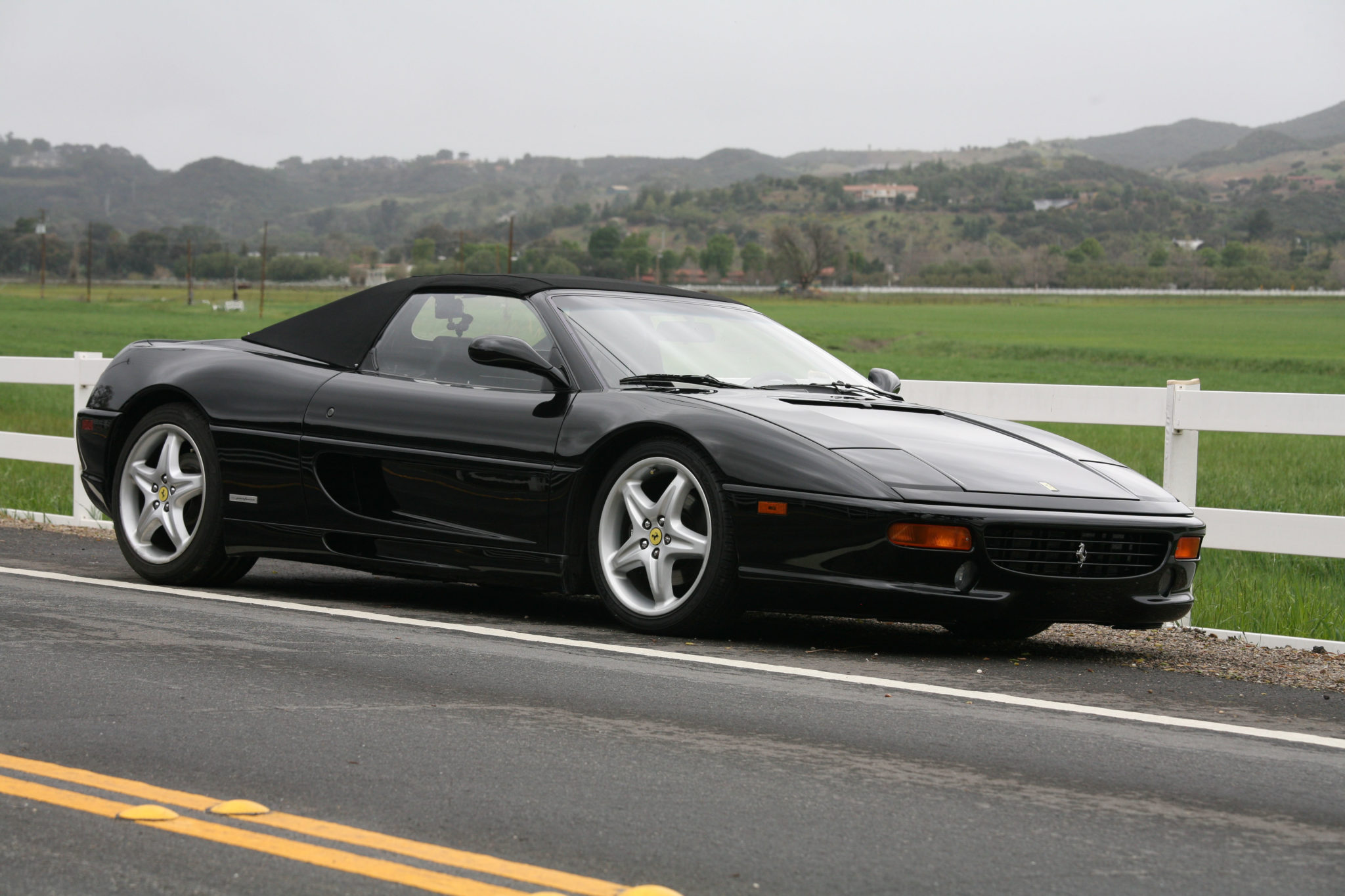 The power-operated black soft top can be seen raised in the gallery below. Factory 18″ wheels are said to wear new 225/40 and 265/40 Michelin Pilot Sport 4S tires in place of the Lexani and Falken rubber shown in photos. Braking is handled by black calipers with white Ferrari logos.