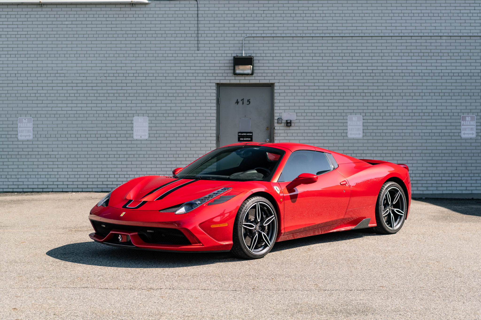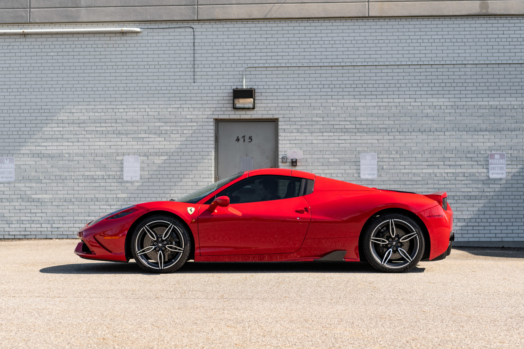 Five-spoke 20″ wheels are finished in matte black with brushed lips and spokes and wear Michelin Pilot Sport Cup 2 tires measuring 245/35 on the front and 305/30 out back. The chassis is equipped with black calipers, carbon ceramic brake rotors, magnetic suspension damping, F1-Trac traction control, Vehicle Dynamic Assistance, and a vehicle lifter for added clearance. The Speciale features a unique electronic side-slip control system, which adjusts the car’s trajectory based on driving inputs via the electronically-controlled rear differential and traction control program.