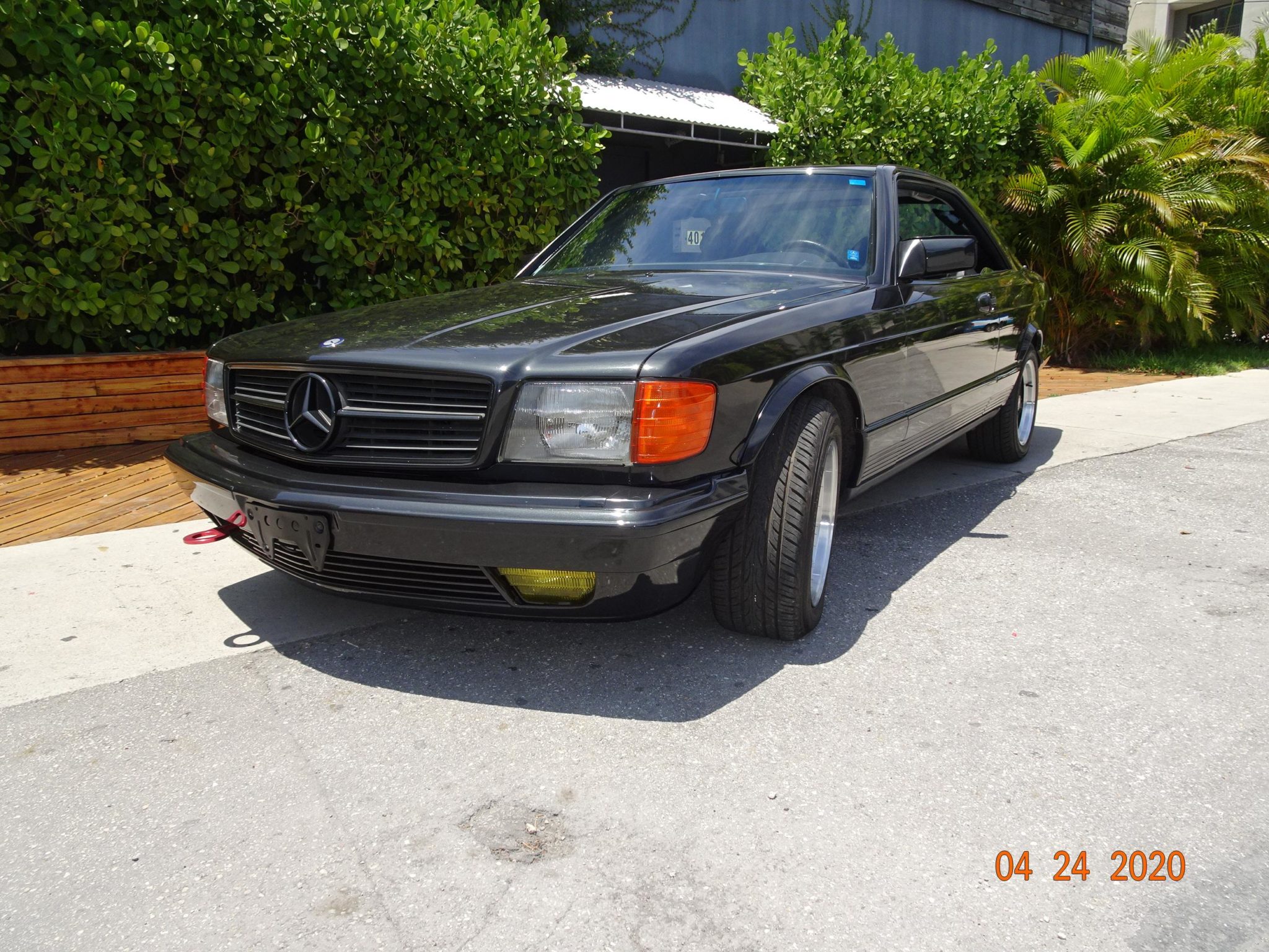 16″ AMG Penta wheels with black centers are wrapped in Yokohama AVID ENVigor tires that show 2018 date codes. The self-leveling rear suspension has been retained, and braking is handled by four-wheel disc brakes with ABS.