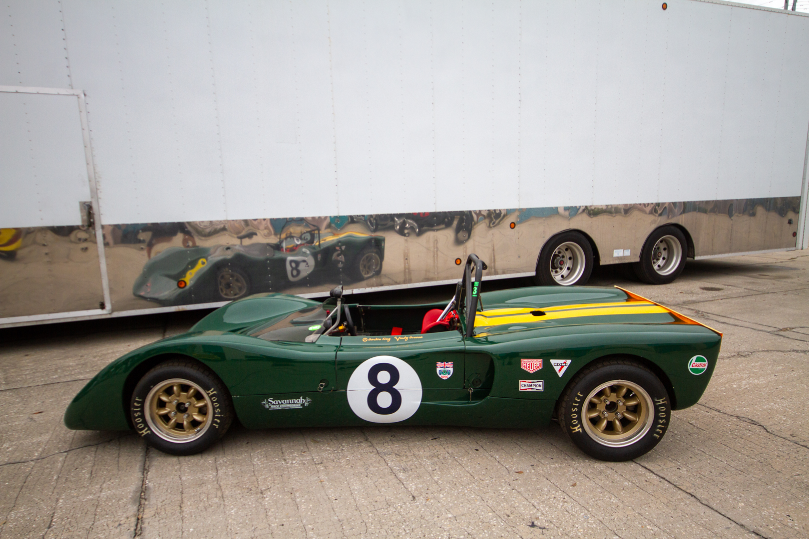 Beneath the composite bodywork is a semi-monocoque steel tube and aluminum plate chassis with adjustable control arms, sway bars, and Koni coilover shocks. The Panasport-style wheels are wrapped in Hoosier TD rubber, and braking is managed by discs with aluminum calipers at each corner.