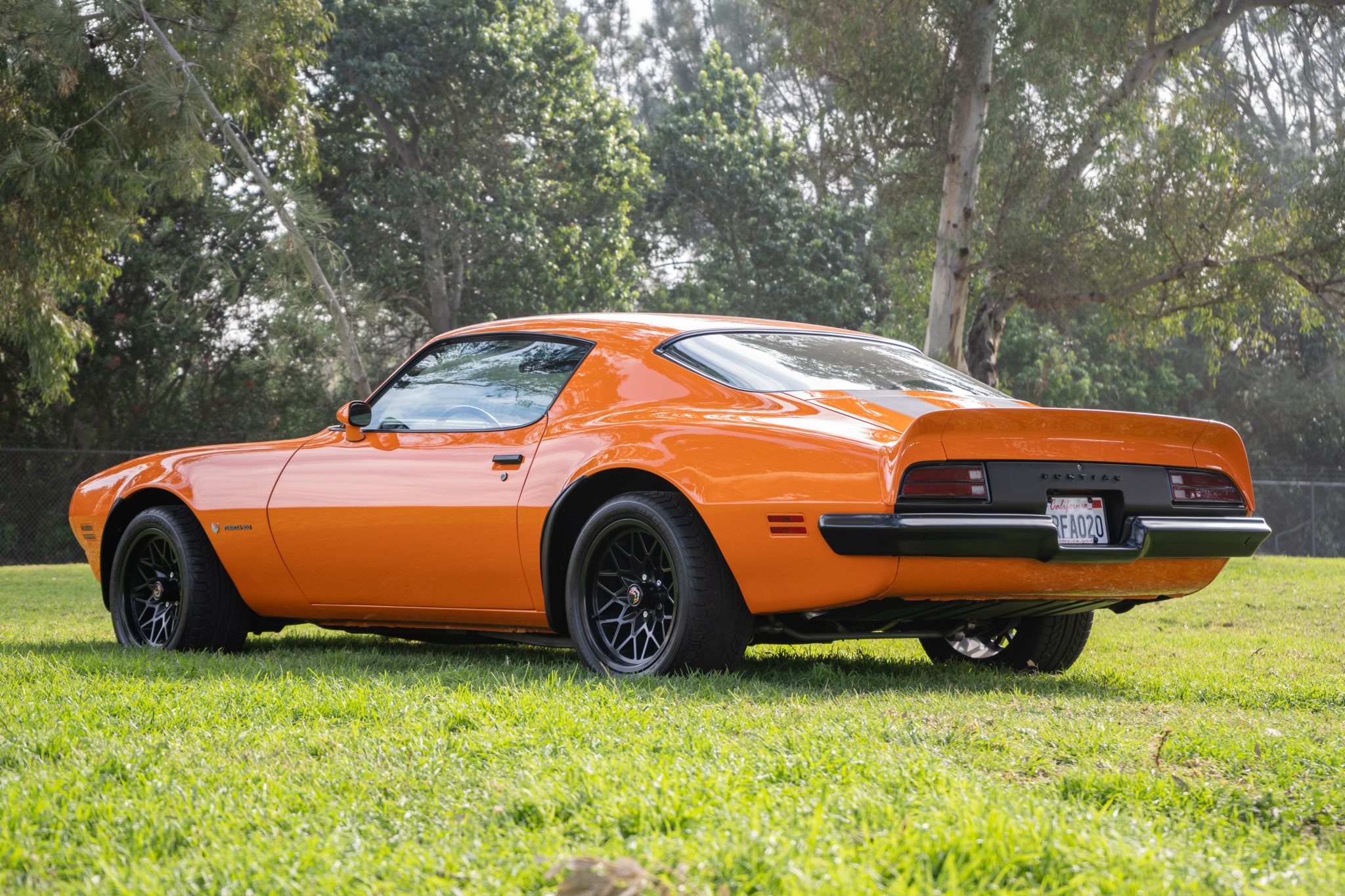 Black 17″ wheels with Firebird center caps are wrapped in 275/40 BFGoodrich g-Force Sport tires displaying 2011 date codes. Disc brakes are fitted up front, with drums at the rear.