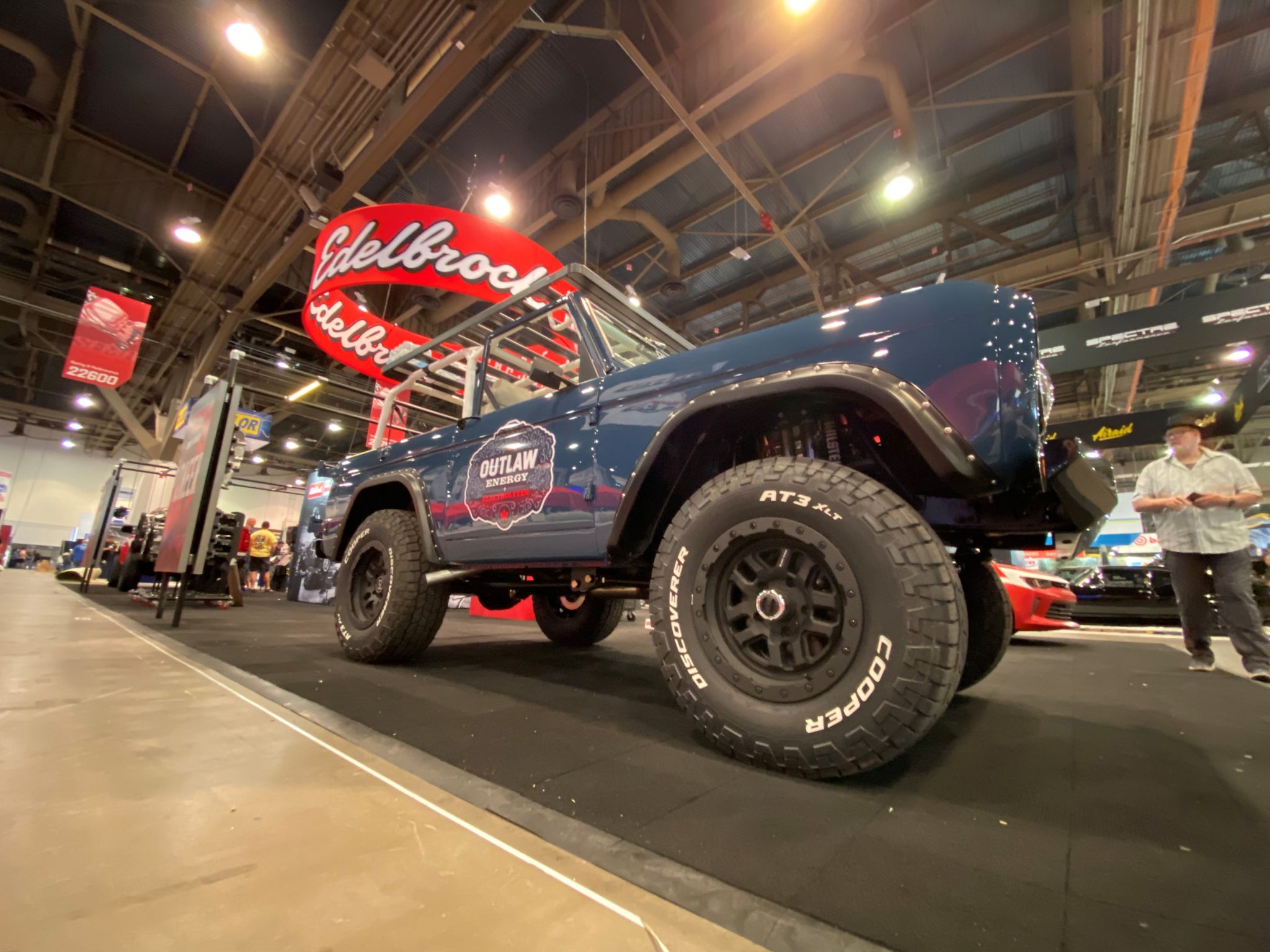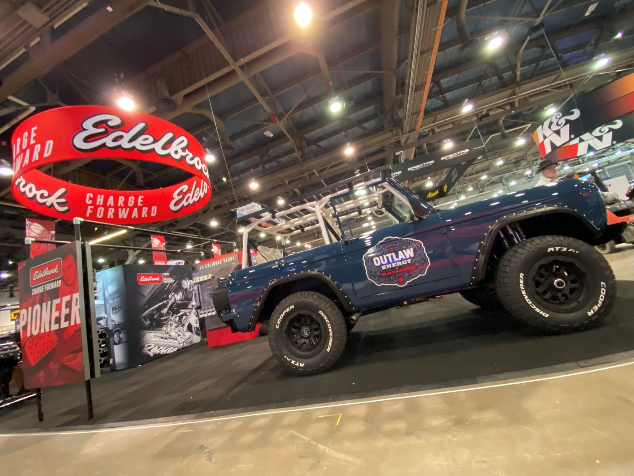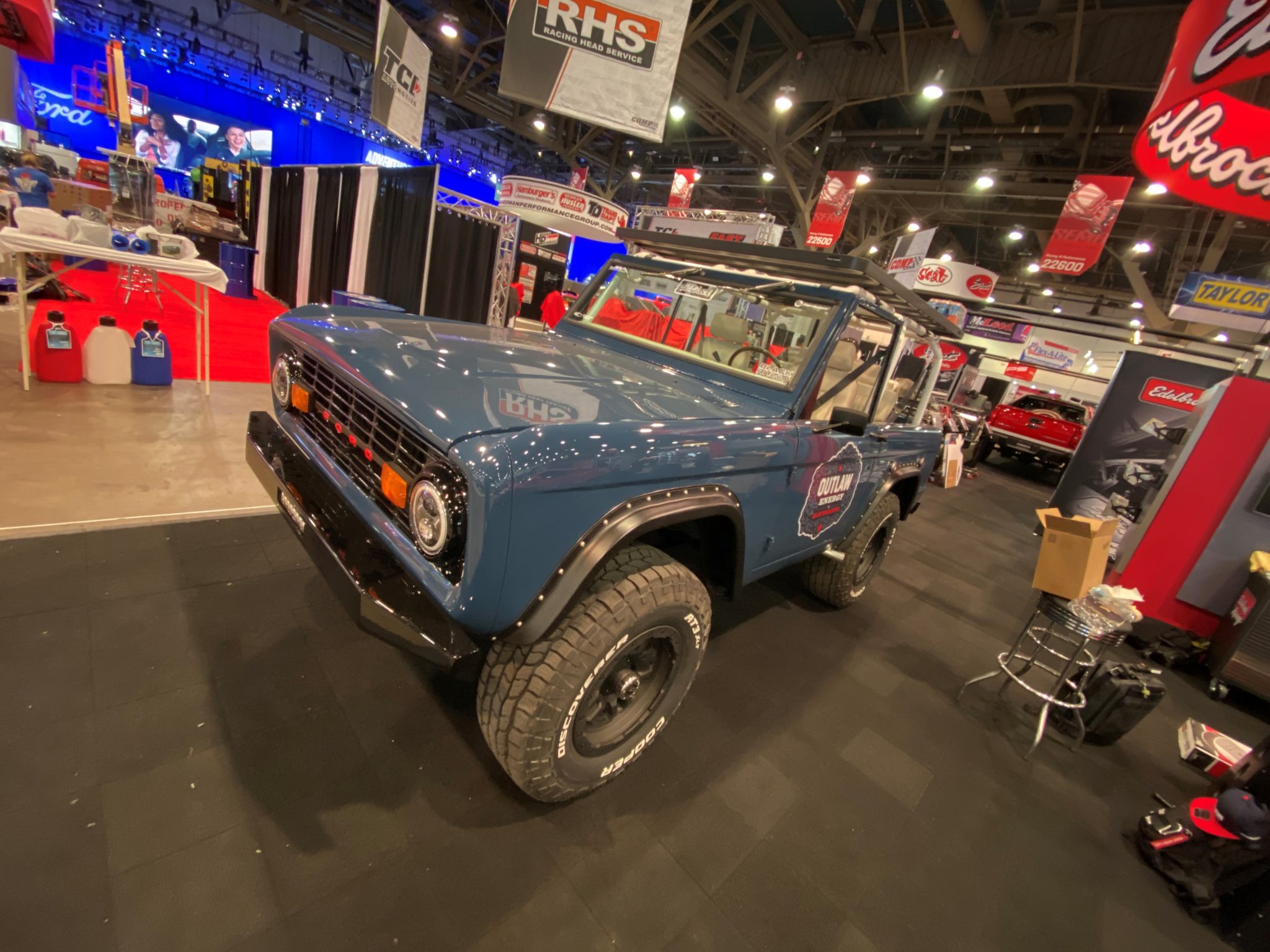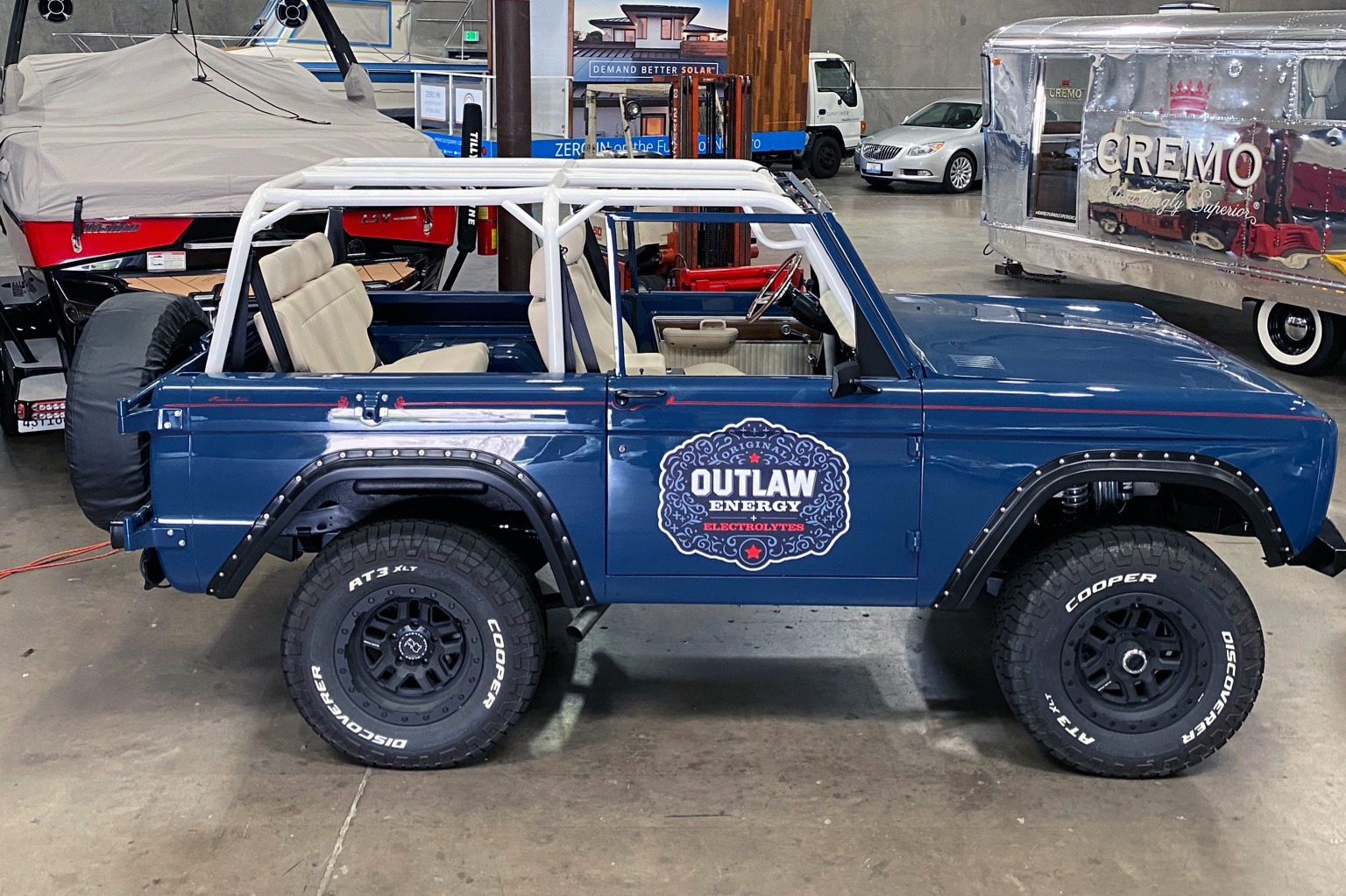 Black Rhino Barstow wheels measure 17″ in diameter and are mounted with Cooper Discoverer AT3 XLT tires. A covered spare is affixed to a swing-out carrier in the rear. Additional features include power steering and four-wheel disc brakes as well as Bilstein shock absorbers with remote reservoirs.