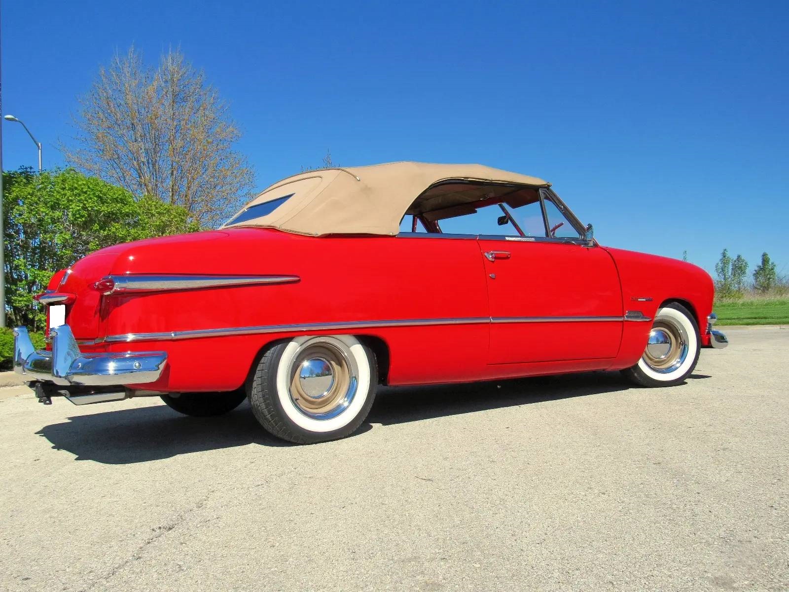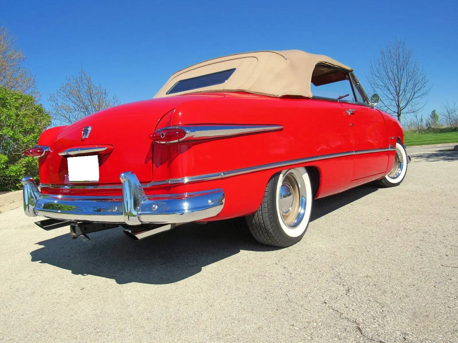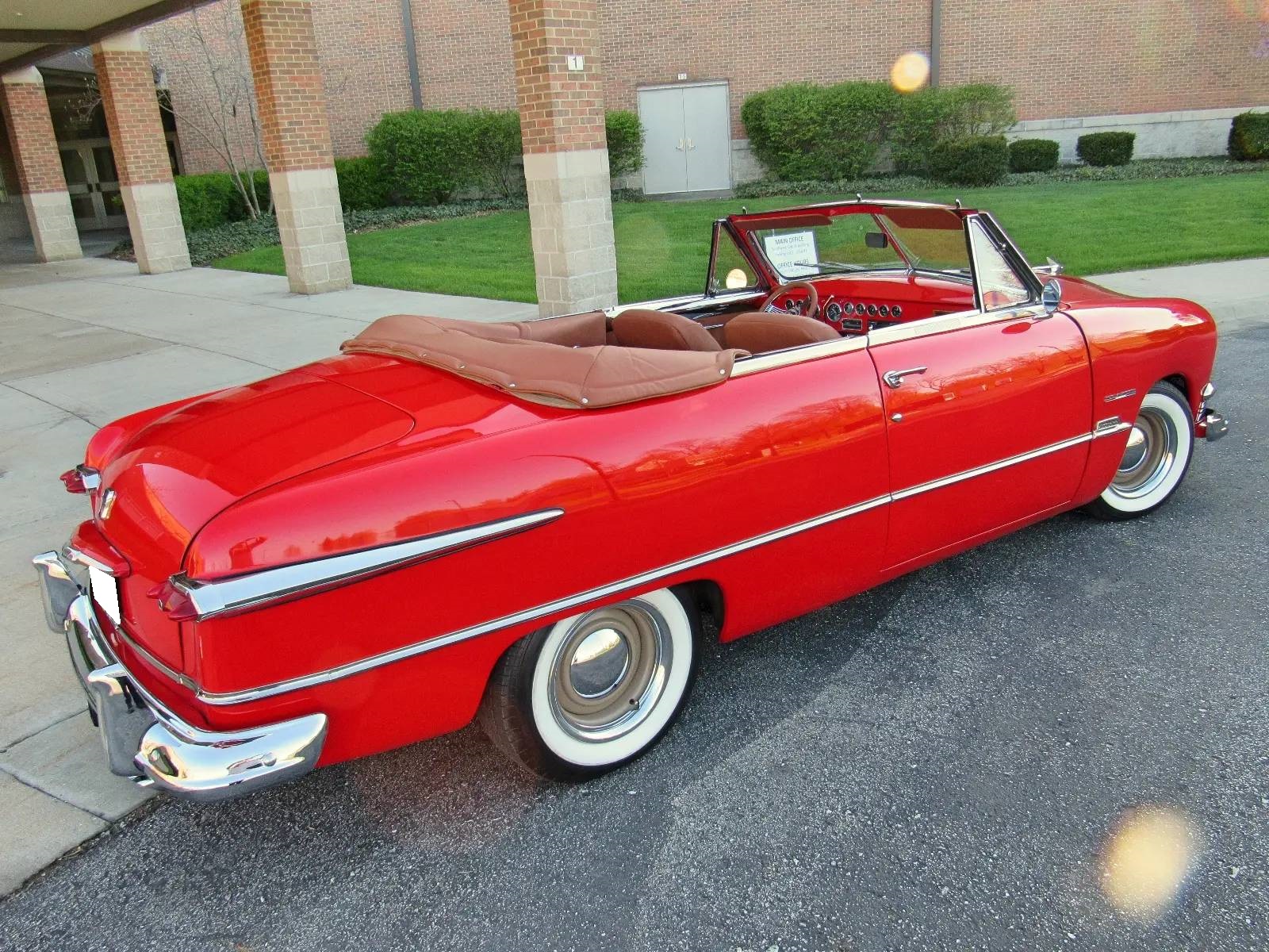 Tan-painted 15″ wheels wear chrome beauty rings and hubcaps, and are mounted with 215/65 Toyo Extensa A/S wide-whitewall tires dated 2016. Suspension modifications include a Heidts front end as well as coilovers at all four corners. Power-assisted steering and front disc brakes have been added.