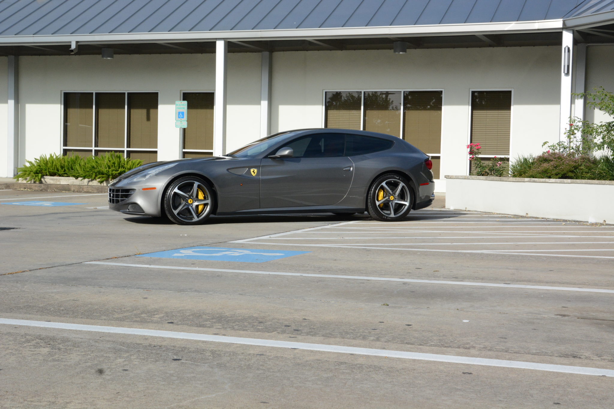 The factory 20″ wheels were replaced with a set from another FF at Ferrari of Houston in February 2012. The right front wheel was later replaced in 2013, and all four were refinished in 2016. A set of Michelin Pilot Super Sport tires are currently mounted, and braking is handled by Ferrari Carbon Ceramic brakes with optional yellow-finished calipers.