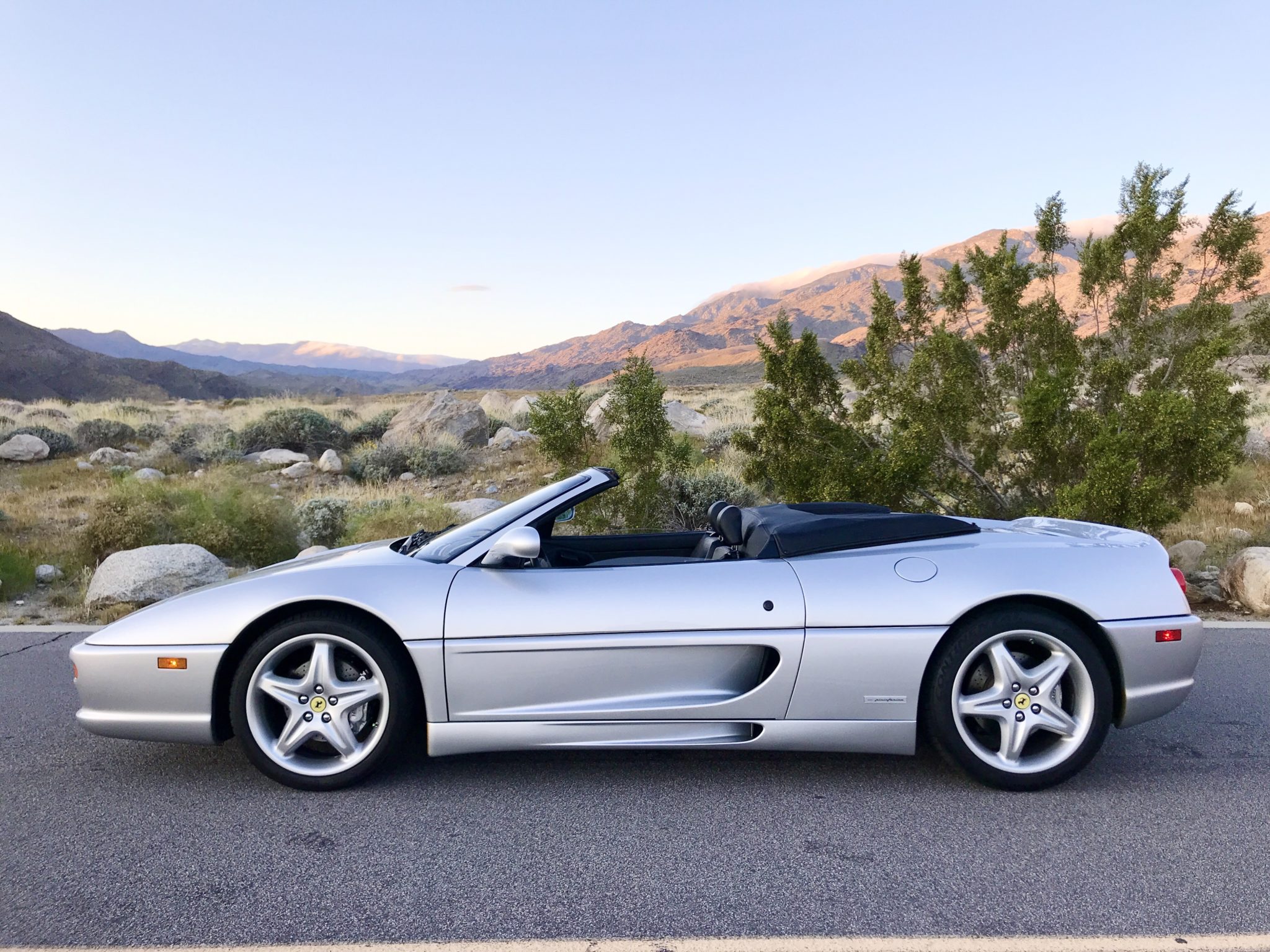 Factory 18” five-spoke alloy wheels are wrapped in Continental Extreme Contact tires sized 225/40 in front and 265/40 in the rear. The power-retractable black convertible top had its pistons and pump replaced in 2018, and a video of the top in operation can be seen here.