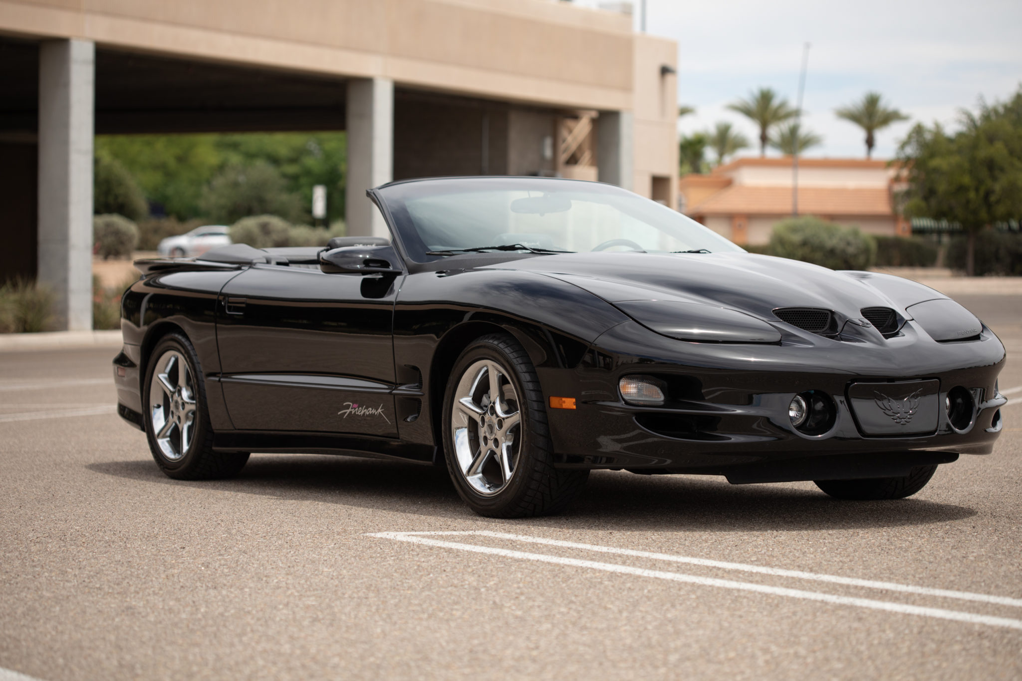 Chrome five-spoke 17″ alloy wheels wear 275/40 Firestone Firehawk SZ50 tires. The SLP package featured a Bilstein suspension.