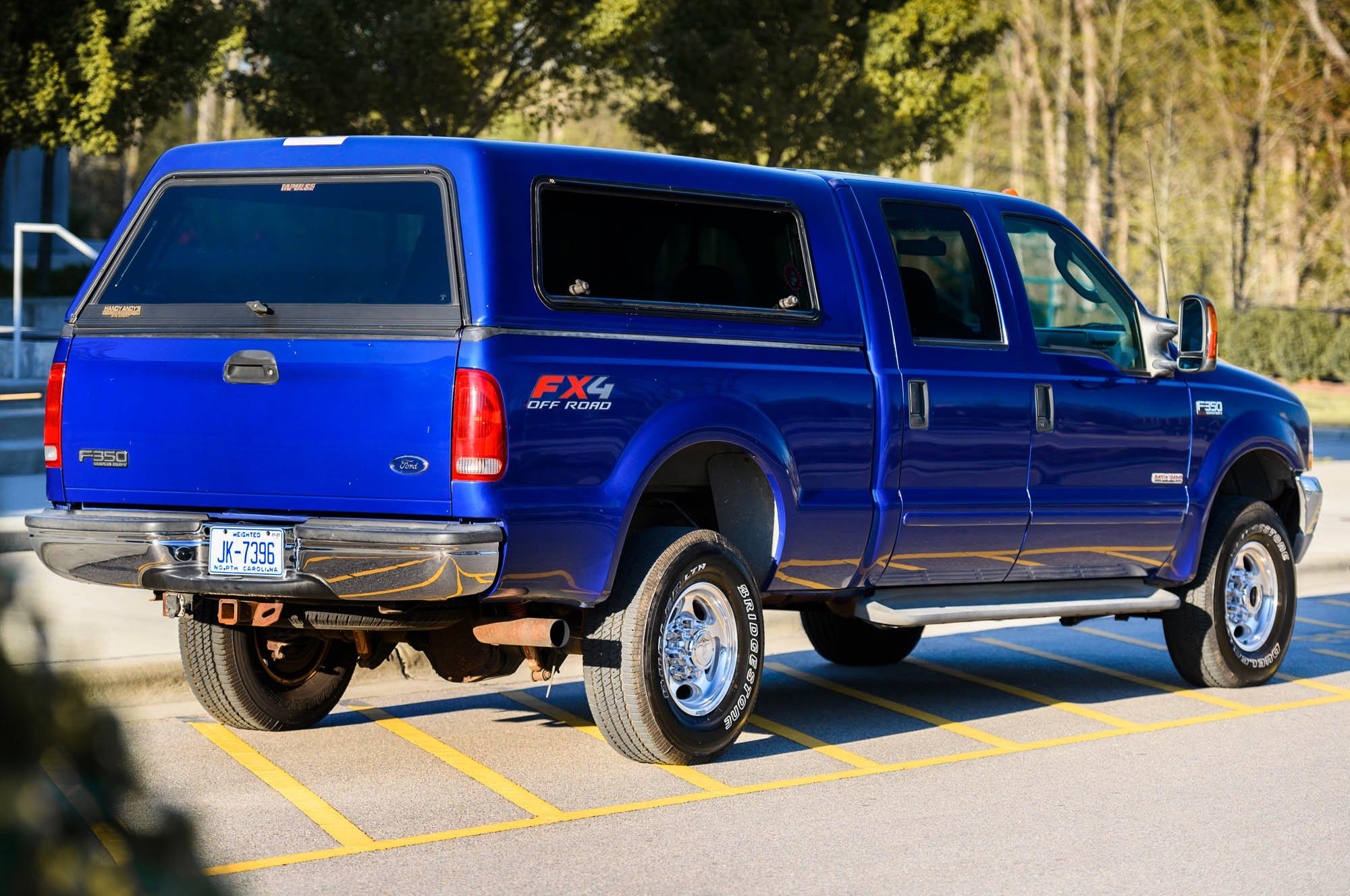 Factory 16″ aluminum wheels are wrapped in 265/75 Bridgestone Dueler LTH tires installed in 2019. The FX4 package includes Rancho front and rear shocks, a steering damper, and skid plates for the transfer case and the fuel tank. The truck has a 156.2″ wheelbase and measures 245.8″ in overall length.