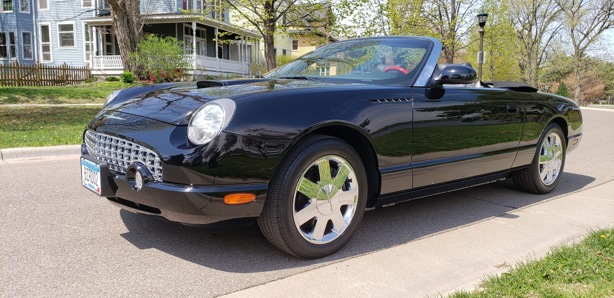 Chrome 17″ wheels wear Michelin Pilot HX MXM4 tires that show 2002 date codes. The body-color hardtop is shown in the gallery and is included in the sale along with a rolling stand and a cover.