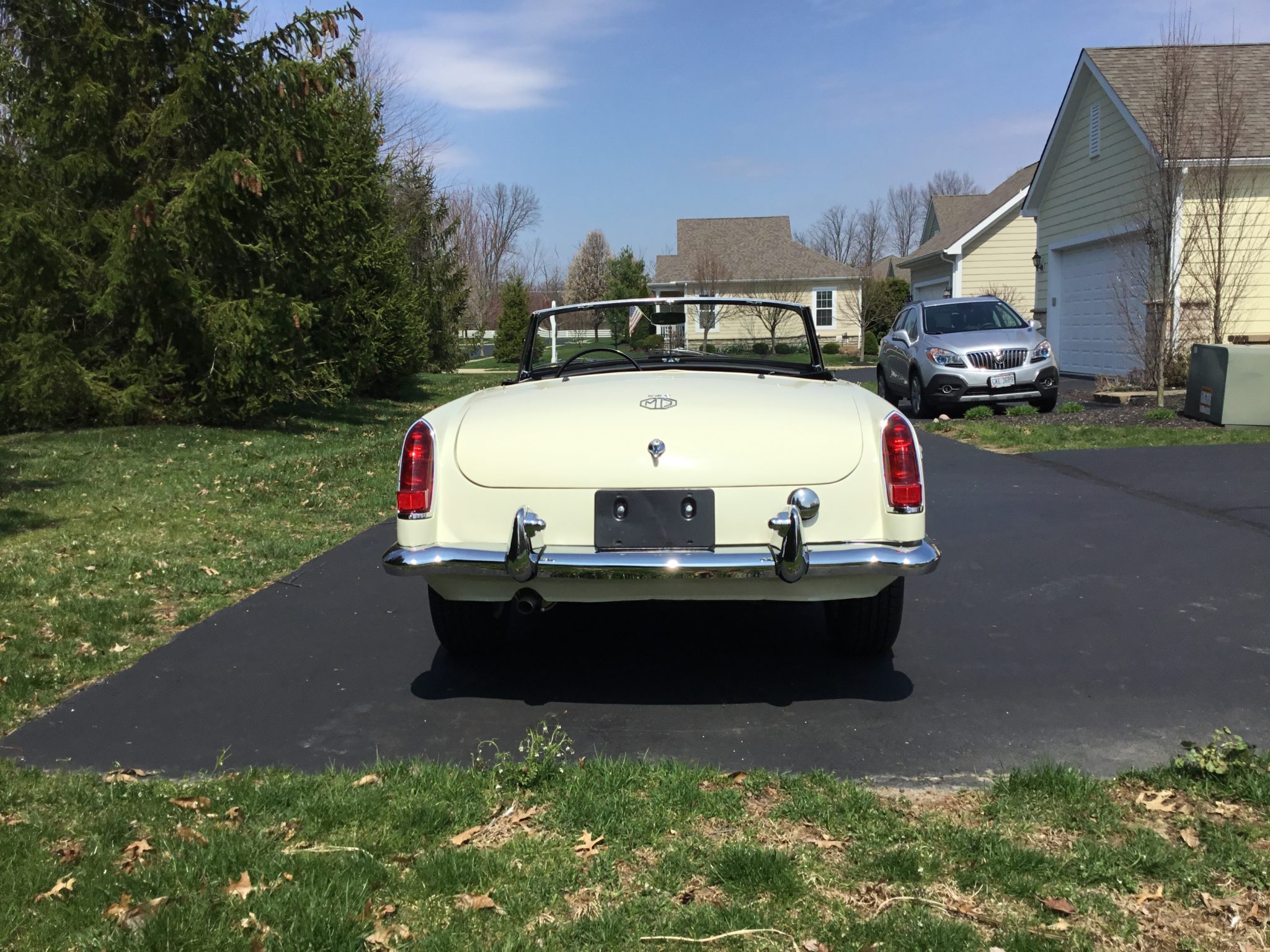 Aftermarket 14″ wheels from Specialist Car Products Ltd are wrapped in General Altimax RT43 tires, and a full-size spare is stored in the trunk. Front disc brakes feature red-painted calipers, and rebuilt front and rear axles were used in the restoration process.