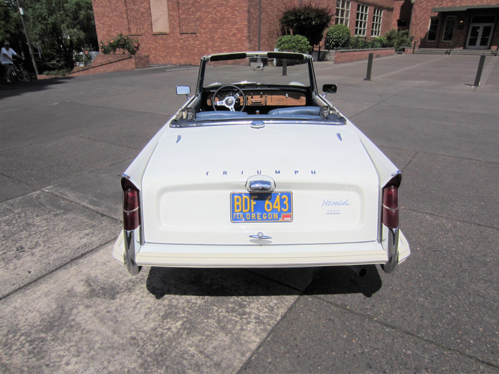 Refinished 13” wheels sourced from a later Spitfire model wear replacement tires that were fitted within the past year. The suspension features a lowering block and rear camber bar out back. The seller also fitted the front disc brakes from a Spitfire, along with replacement of the rear brake cylinders and shoes. The factory steel wheels and hubcaps are included in the sale and shown in the gallery below.