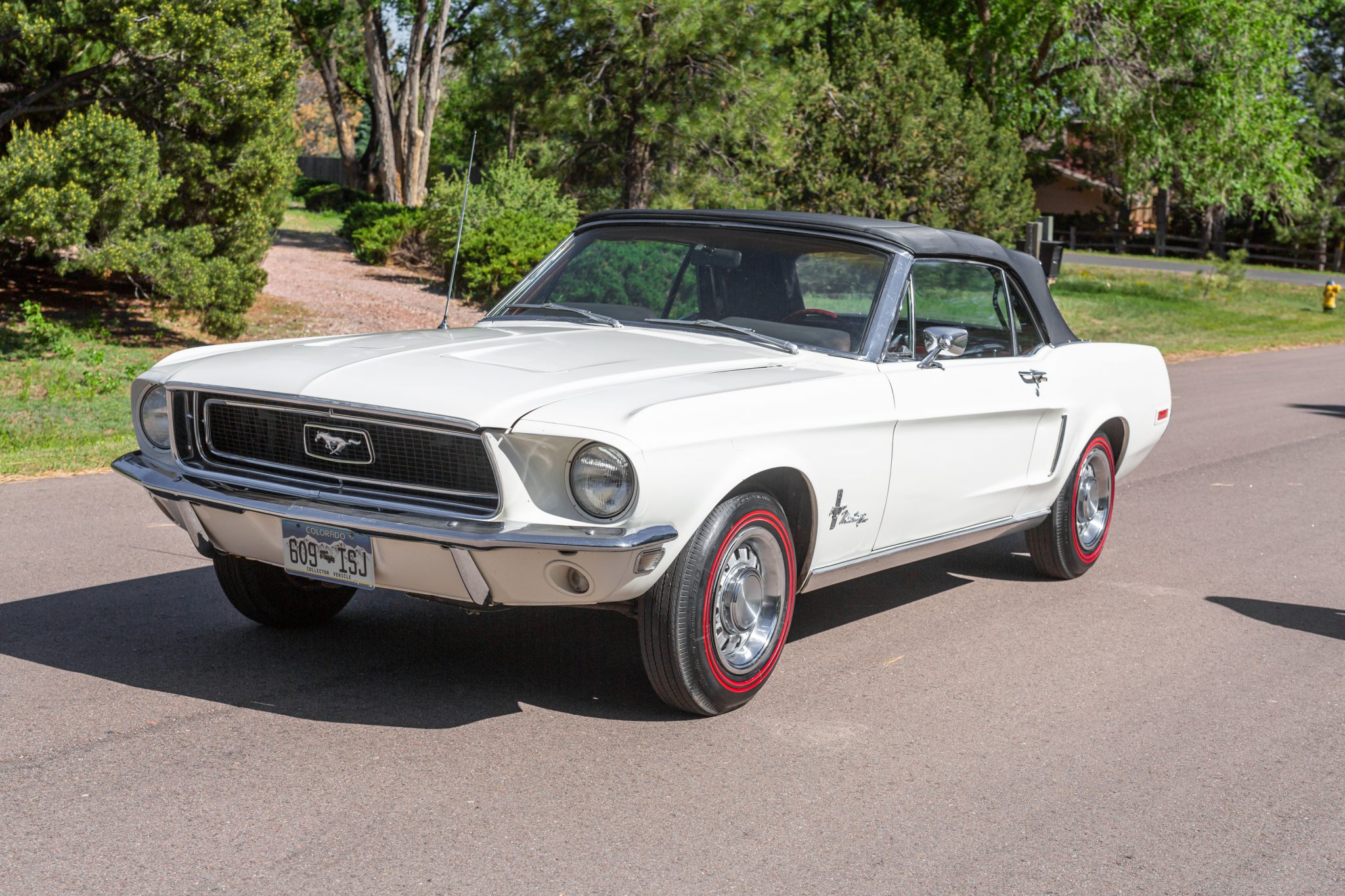 Steel 14″ Rallye wheels wear chrome beauty rings and 6.95-14 BFGoodrich Silvertown dual-redline tires that were installed in June 2020. The braking system was overhauled by the seller over the last two years with replacement drums, shoes, and a single-pot master cylinder.