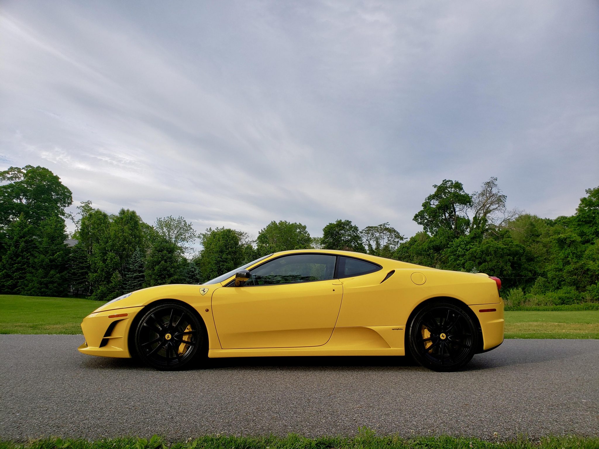 Black 19” wheels wear 235/35 and 285/35 Bridgestone Potenza RE-11 tires that show date codes from 2016. Stopping power is provided by yellow Ferrari-branded calipers and Girodisc two-piece steel rotors. A walk-around video has been provided by the selling dealer.