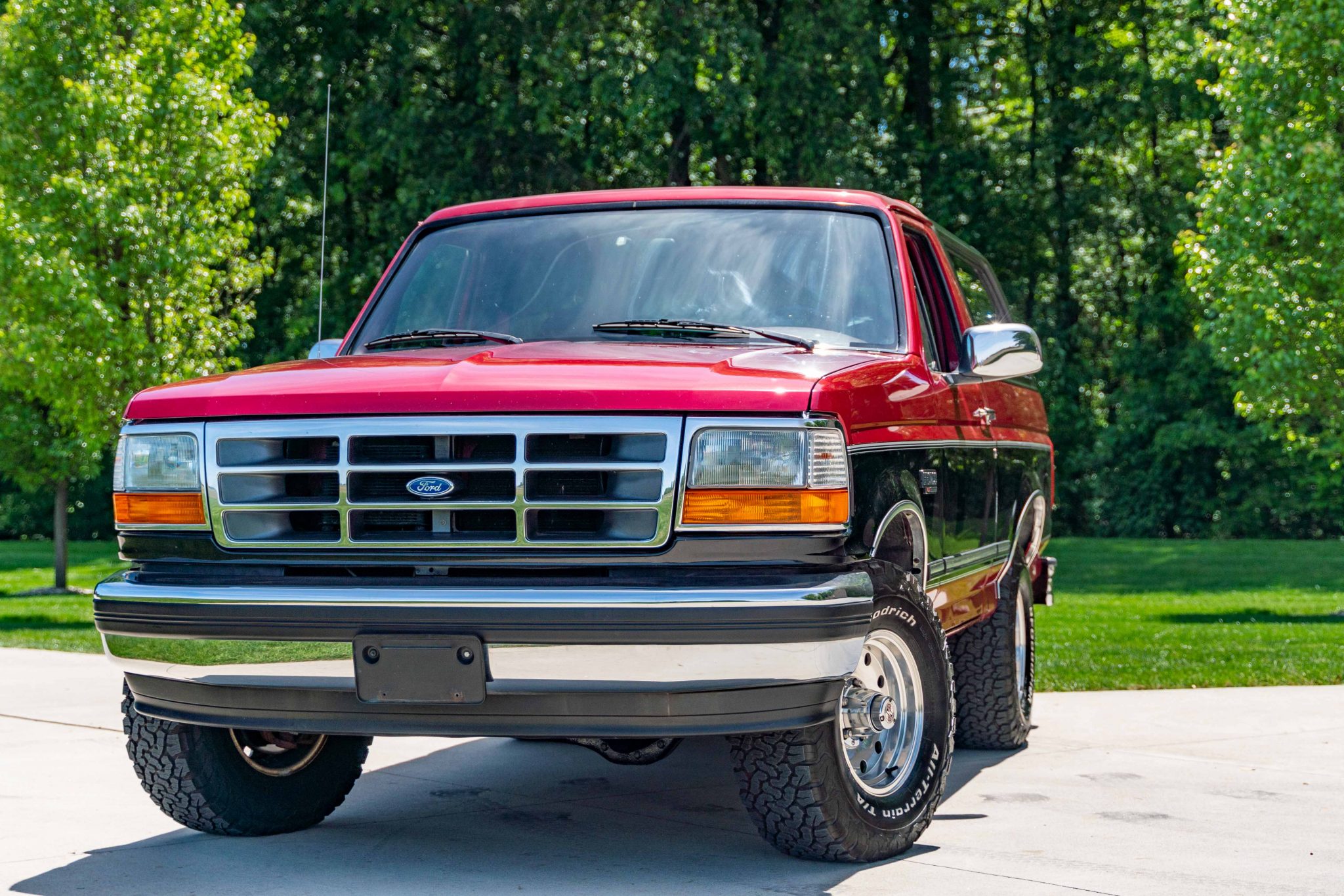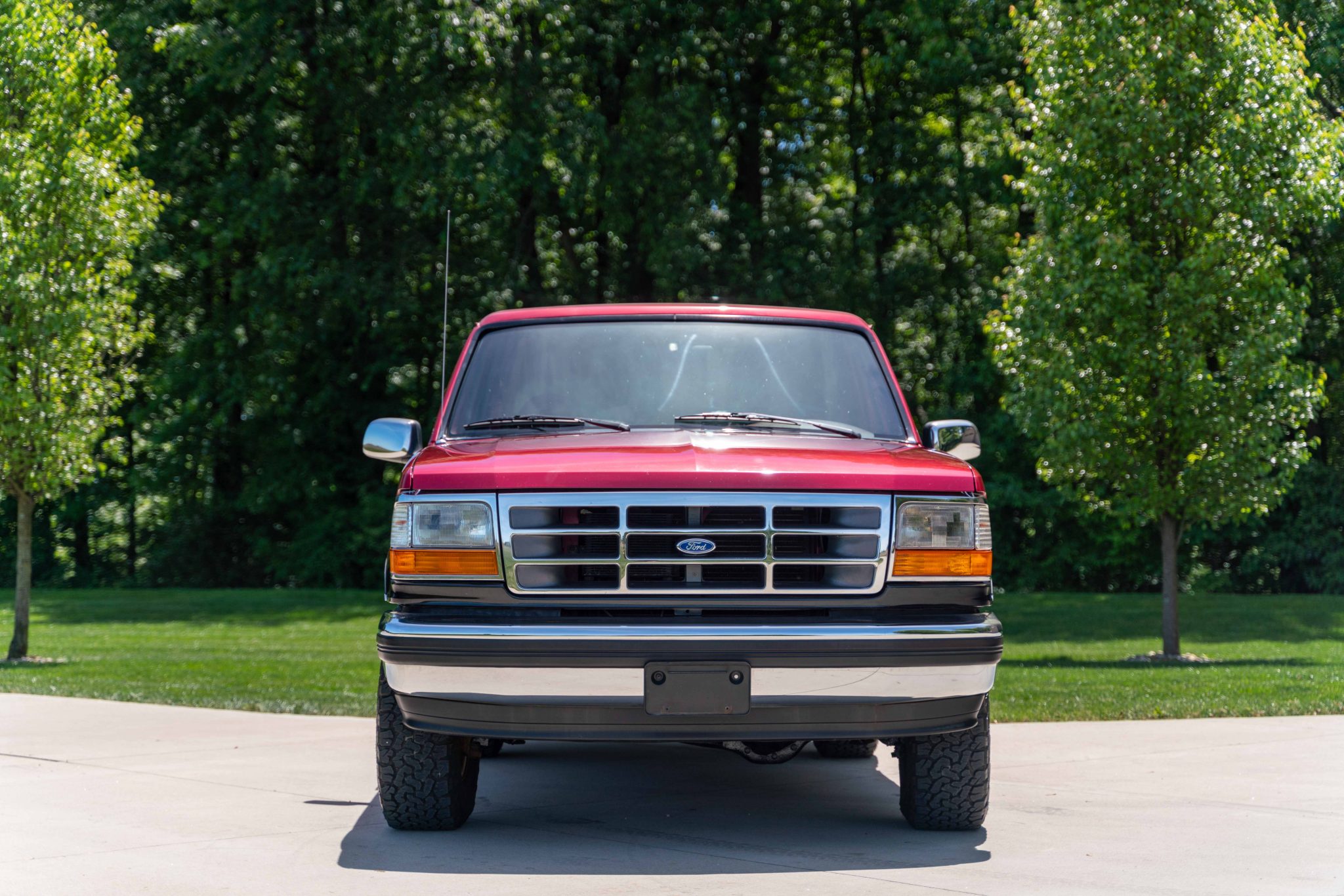 Factory 15″ polished alloy wheels wear 31″ BFGoodrich All-Terrain T/A KO2 tires fitted by the seller. A matching spare is mounted at the rear to a swing-out carrier, which the seller states was refinished to correct flaws. A Rough Country suspension leveling kit was also added.