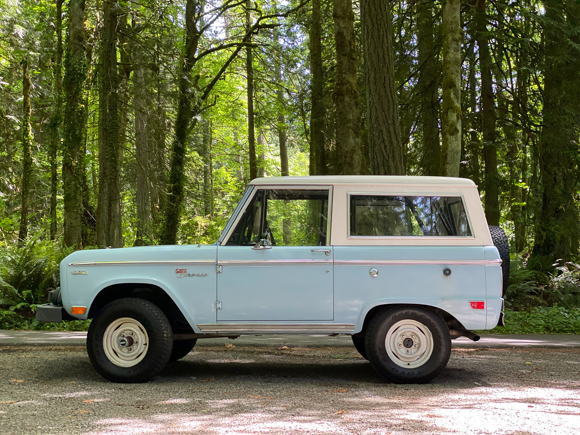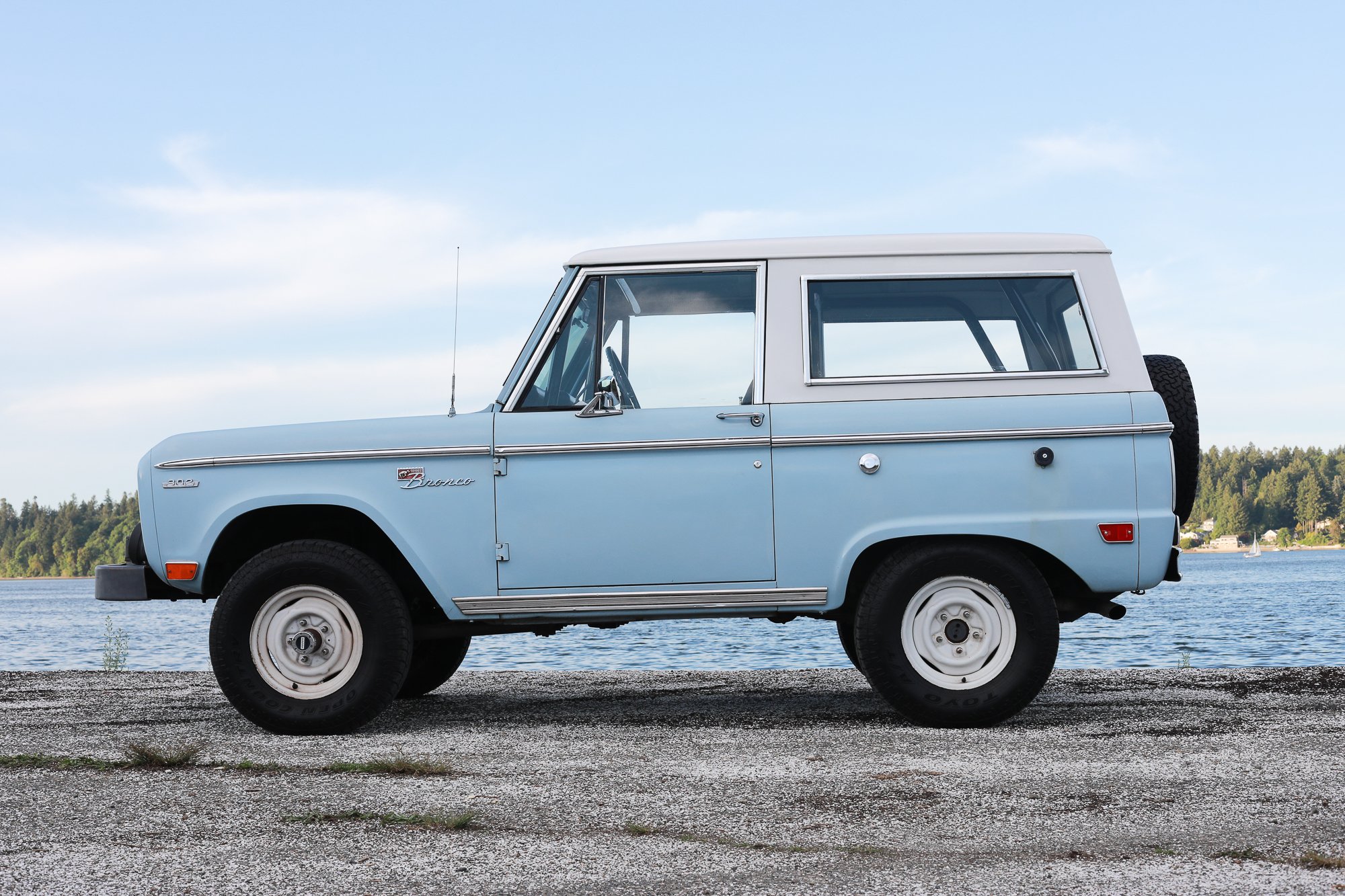White 15″ steel wheels were mounted with new 235/75/15 Toyo Open Country all-terrain tires in June 2018. The truck is equipped a power steering box that was rebuilt in 2008 as well as power-assisted front disc brakes.