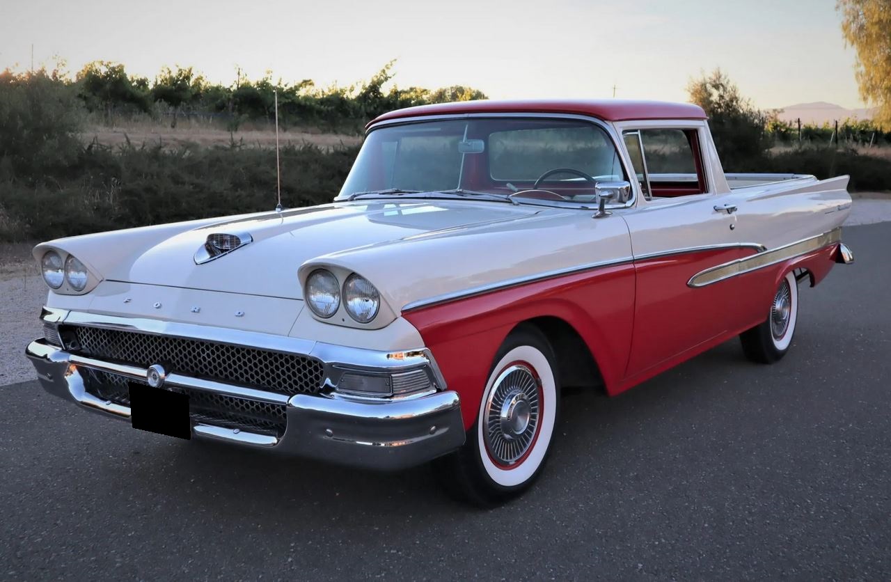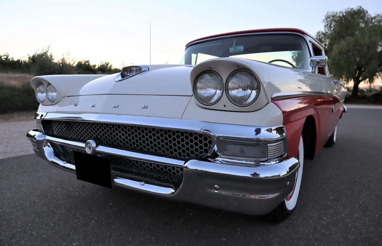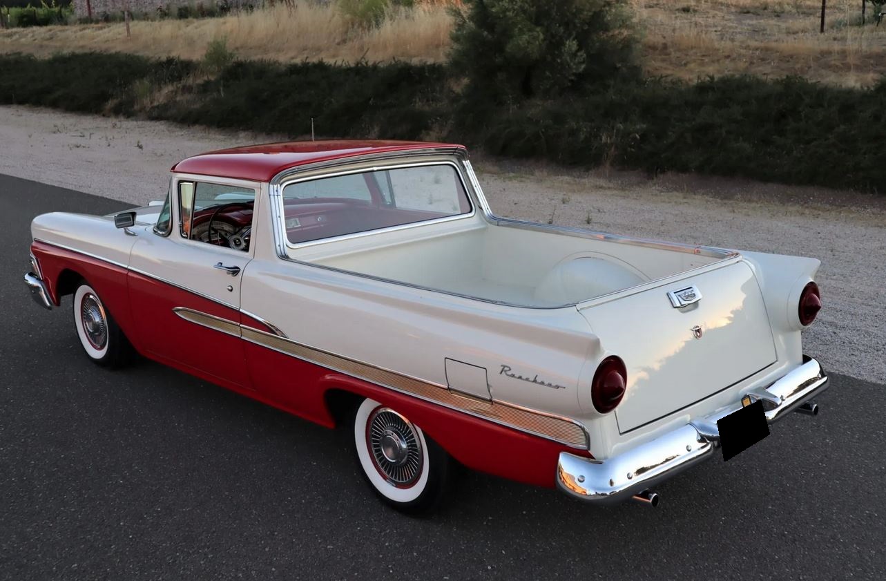 Red-painted steel wheels feature Ford-branded hubcaps and wide whitewall tires that are said to have been replaced within the last nine months. Additional maintenance in that time includes a brake system bleed and replacement of the wheel cylinders and master cylinder.