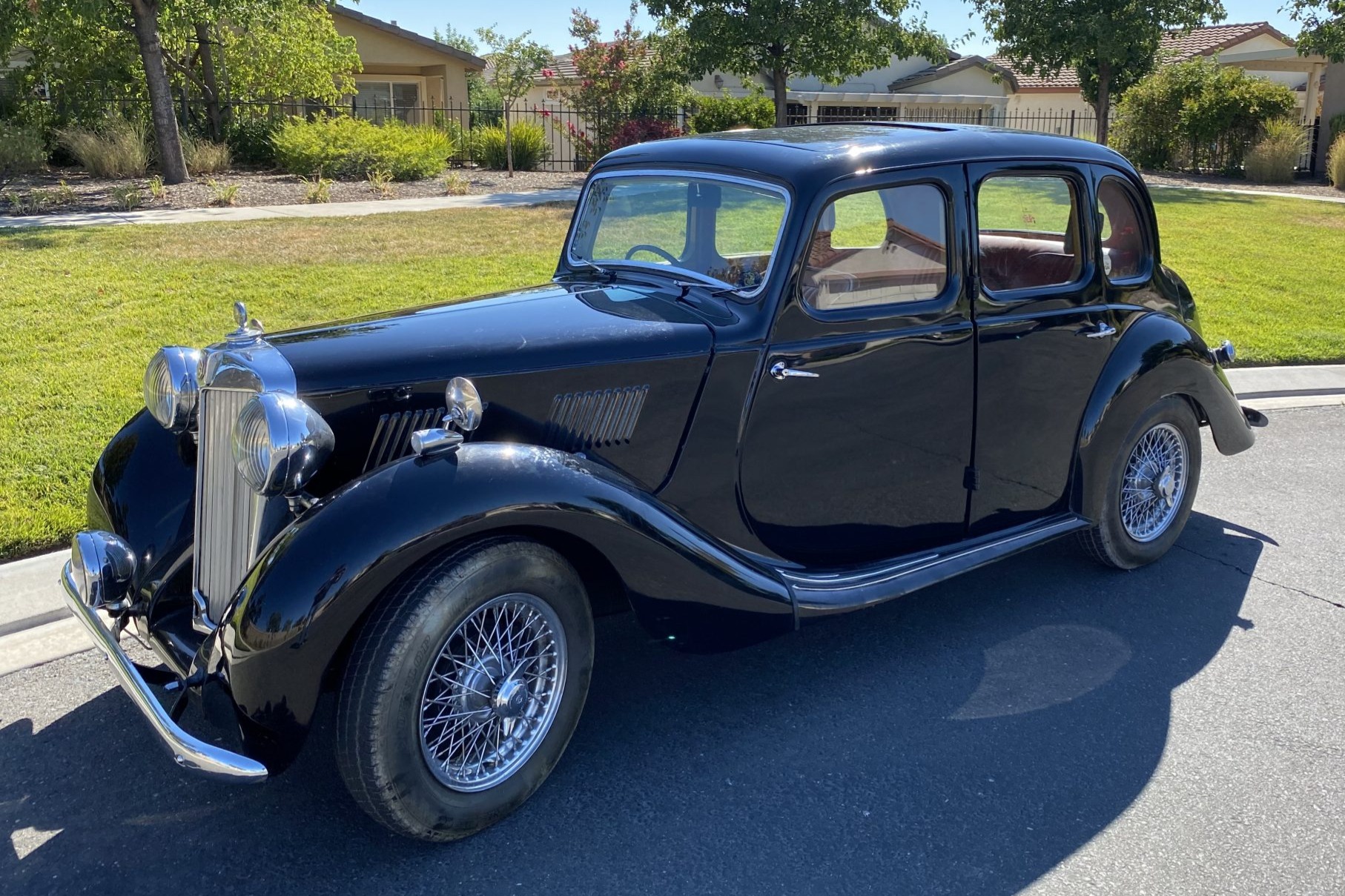 The YA rides on a 99″ wheelbase and was one of the first British production cars to utilize an independent front suspension. Polished wire wheels with two-eared knock-off spinners are wrapped in Dunlop SP 20 metric tires that show pre-2000 date codes. Braking is provided by drums at all four corners, and the seller reports that the hand brake has been disconnected.