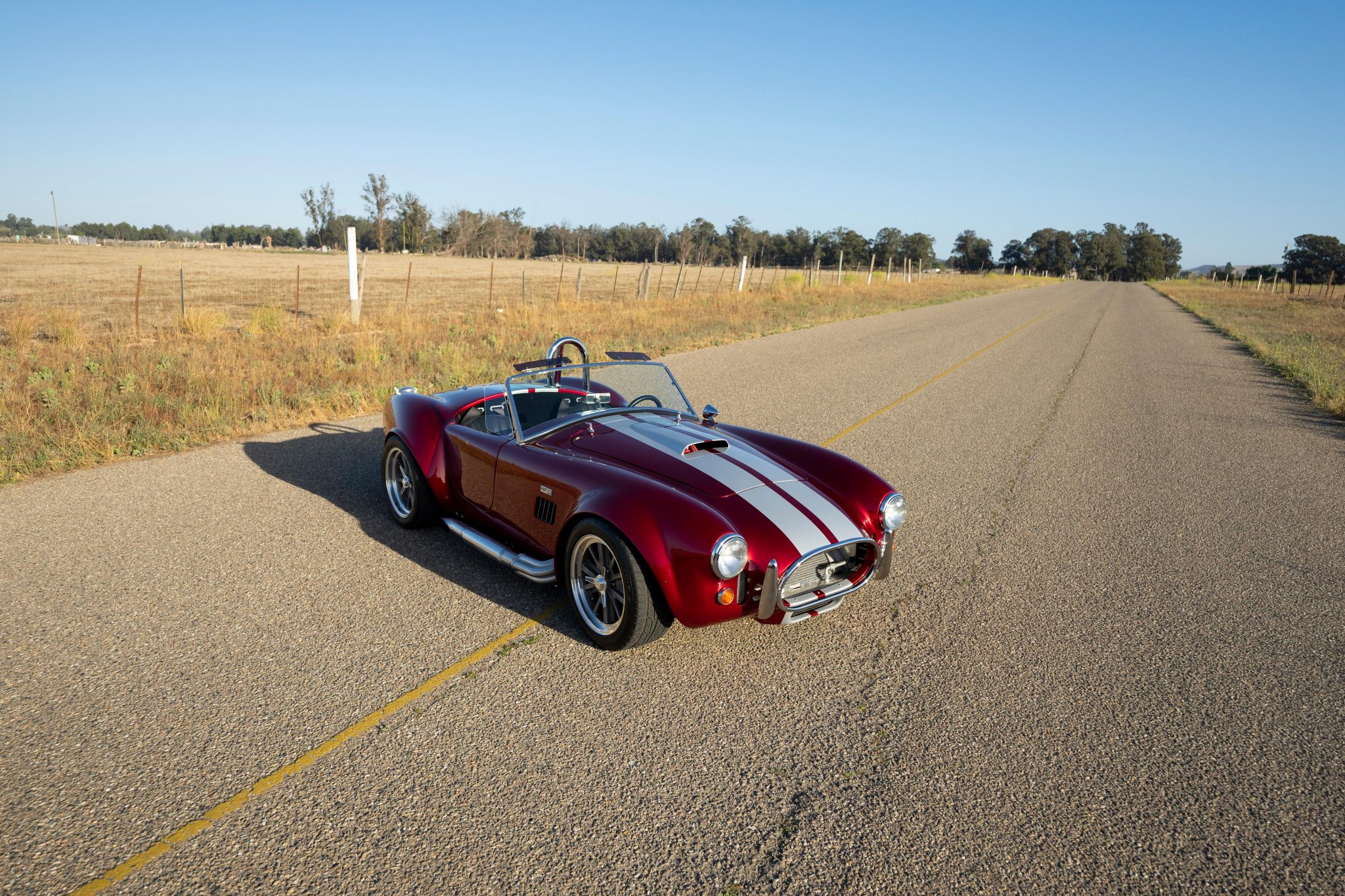 17″ Halibrand-style wheels wear Nitto NT555 Extreme tires measuring 245/45 up front and 315/35 at the rear. The coilover suspension features Factory Five springs, and disc brakes are equipped at all four corners with drilled and vented rotors.