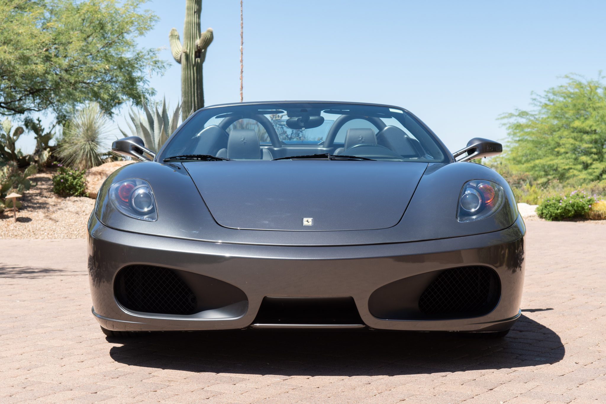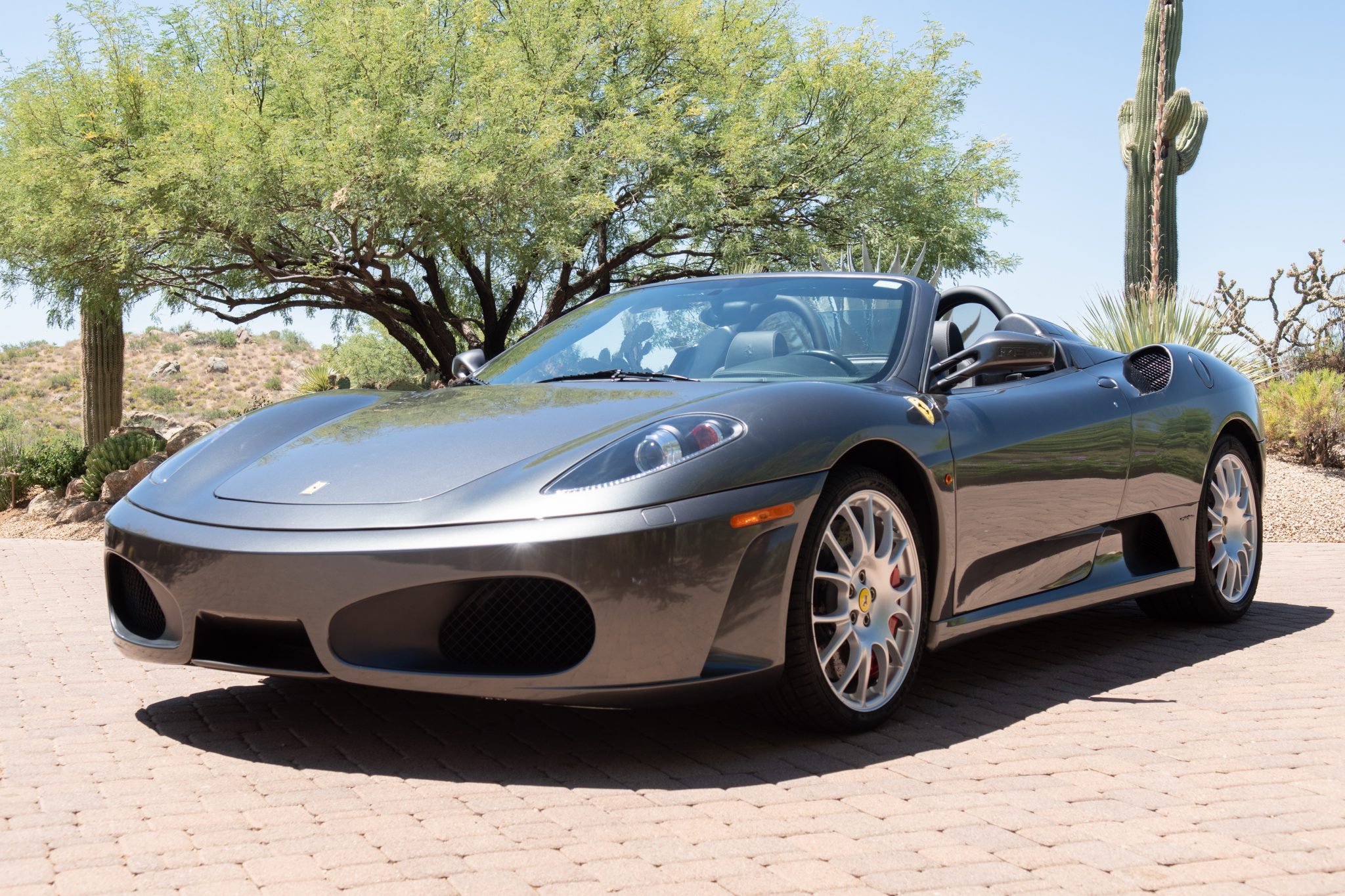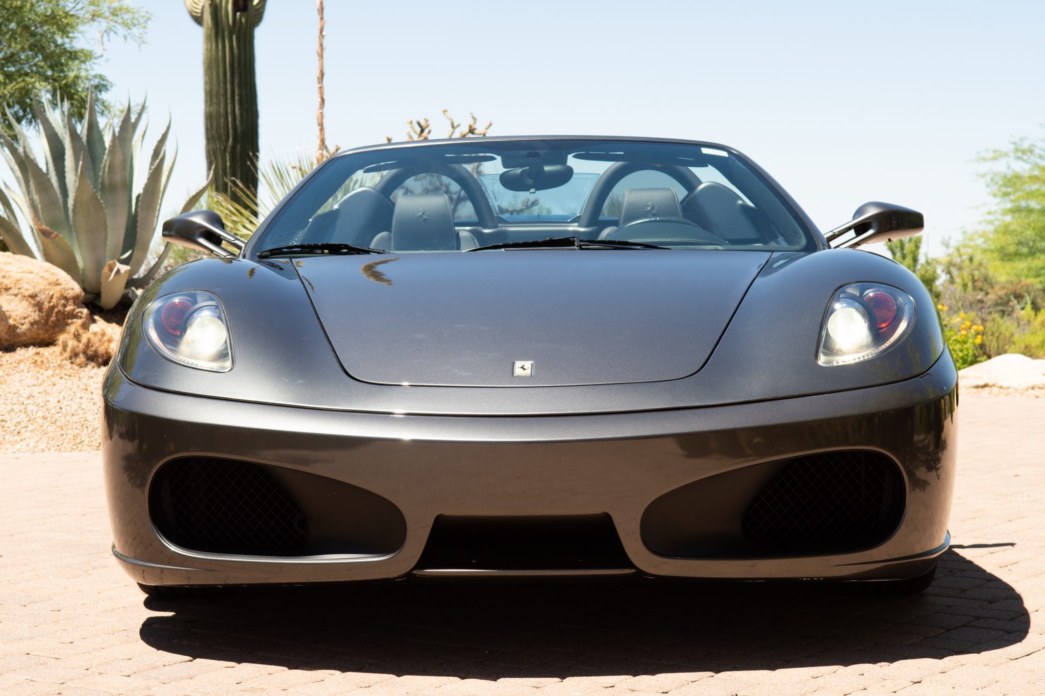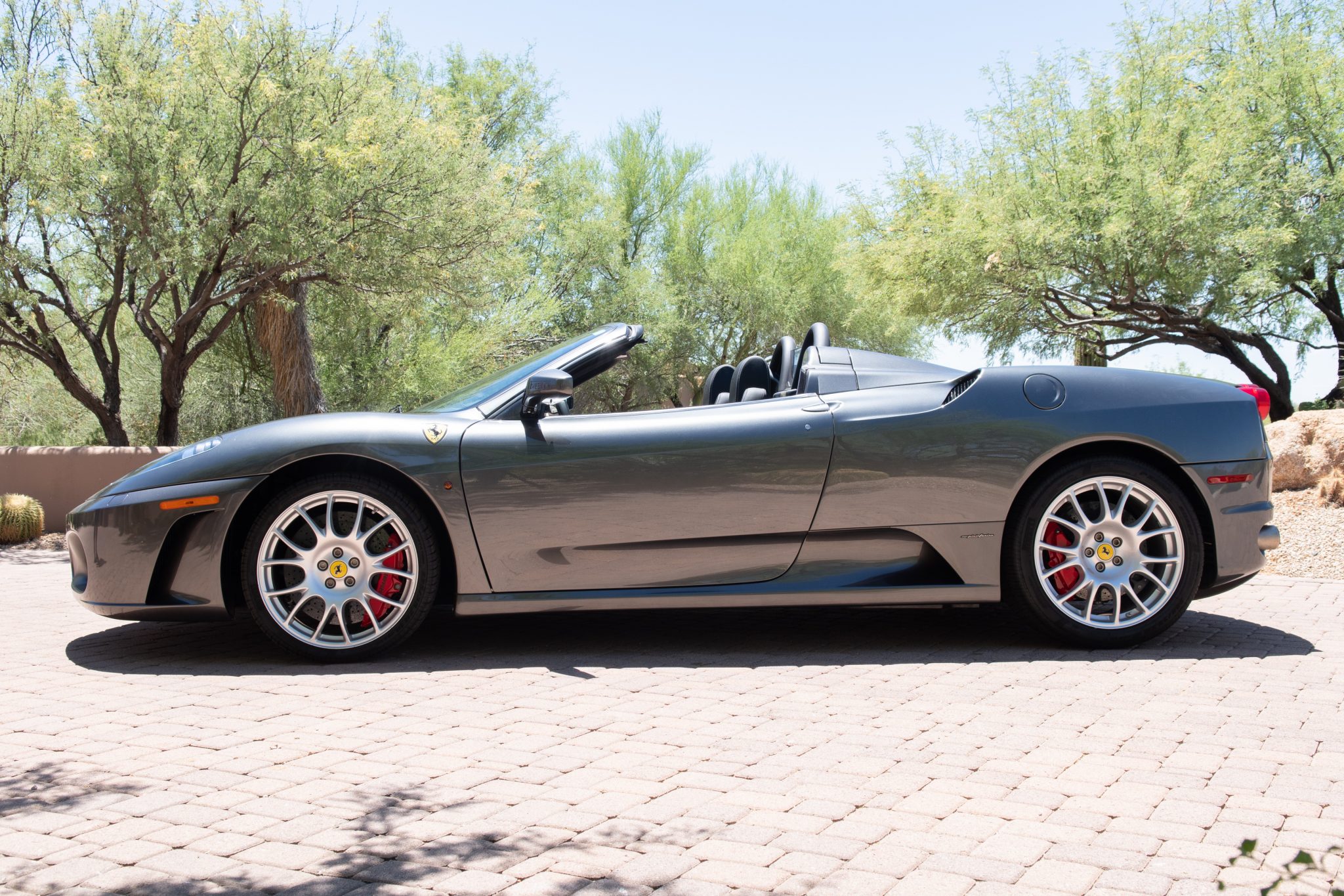 19″ Challenge wheels feature prancing-horse center caps and wear 225/35 front and 285/35 rear Pirelli P Zero Rosso tires installed in 2018. Braking is from red Ferrari-branded calipers and cross-drilled carbon-ceramic rotors at all four corners.