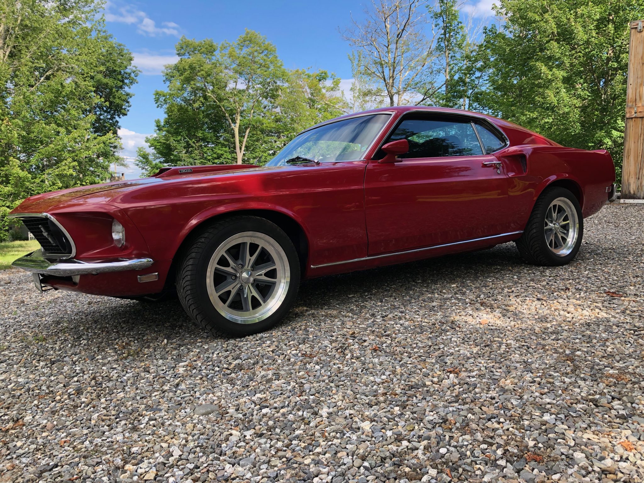 The 17” Halibrand-style wheels feature faux knock-off spinners and are wrapped in Sumitomo HTRZ tires sized 245/45. The seller notes that the front disc and rear drum brakes were overhauled during the refurbishment, along with the front suspension. A replacement rack-and-pinion power steering rack is also noted by the seller.