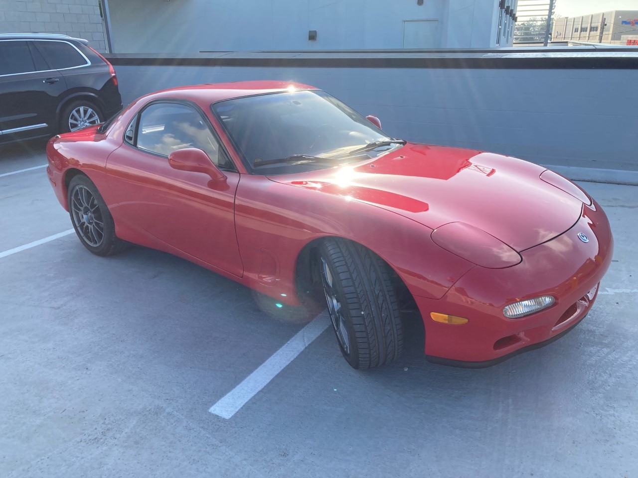 Graphite-finished 17″ x 8″ OZ Racing Ultraleggera wheels were installed by the seller in 2005, at which point the 235/45 RE50A tires were also mounted. Slotted rotors, Hawk HPS brake pads and Goodridge stainless steel braided lines have been installed, and the front calipers have been powder coated in red with white Mazda lettering. The suspension has been modified with Eibach springs, Koni Sport struts, Suspension Techniques front and rear sway bars, and a GReddy front strut brace. In October 2019 the steering rack was rebuilt, while an alignment was performed in April 2020.