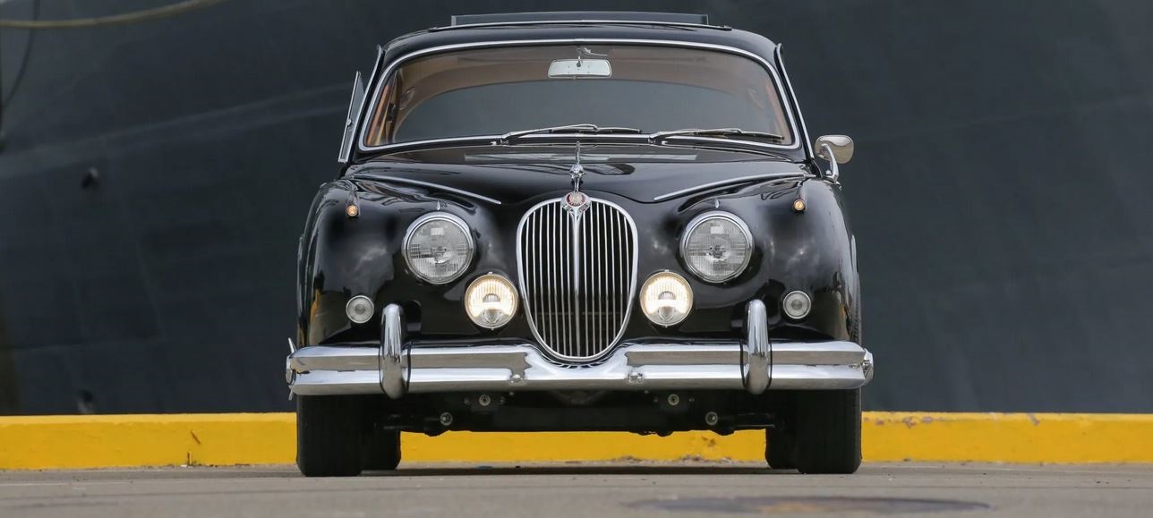Accessories include a single driver-side mirror and rear fender skirts. Chrome 15″ knock-off wire wheels are mounted with Firestone wide-whitewall tires. A matching spare wheel is fitted in the trunk along with a factory tool kit. Woodhead shocks were installed during the 1990s refurbishment along with replacement front coil and rear leaf springs. Braking is handled by Dunlop discs at all four corners.
