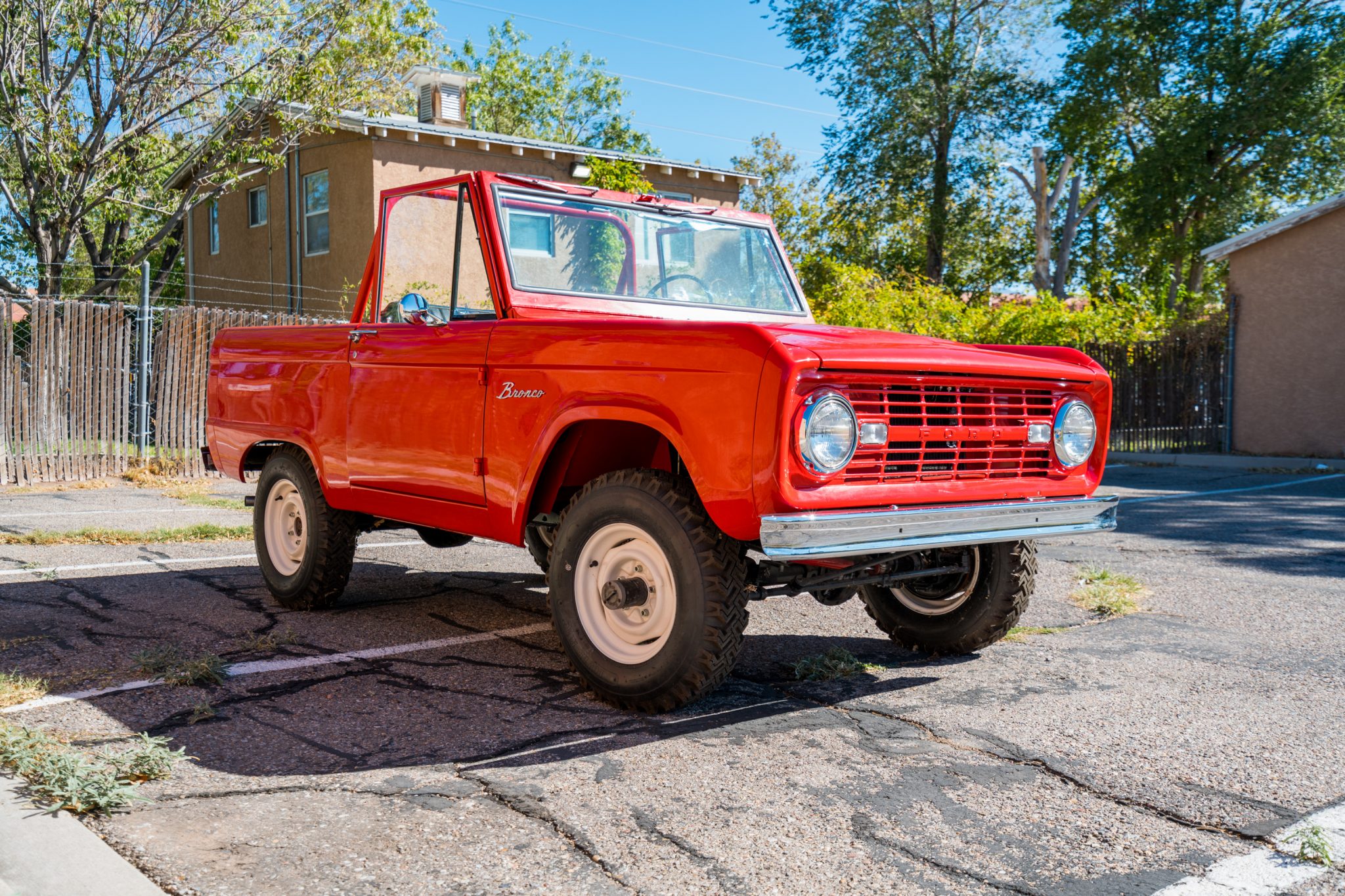 White 15″ steel wheels wear Power King ExtraTraction tires showing 2017 date codes. The truck is equipped with manually locking front hubs and four-wheel drum brakes.