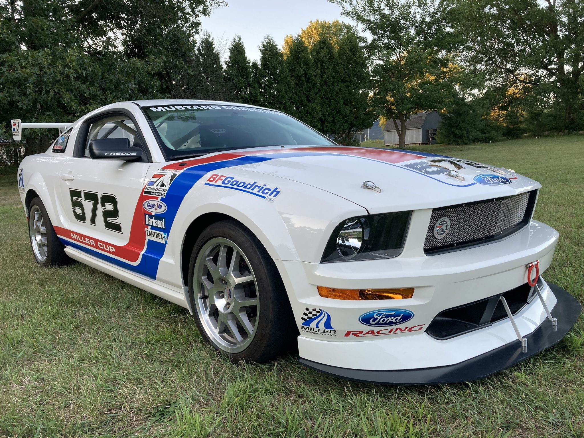 Ford Racing 18″ wheels are mounted with BFGoodrich tires. The FR500S featured adjustable sway bars, stiffened springs, two-way adjustable Sachs shocks, and a Ford Racing steering rack. Braking is provided by four-piston Brembo calipers and 14″ slotted rotors up front, Shelby GT500 disc brakes out back, and a four-wheel anti-lock system calibrated for track use.