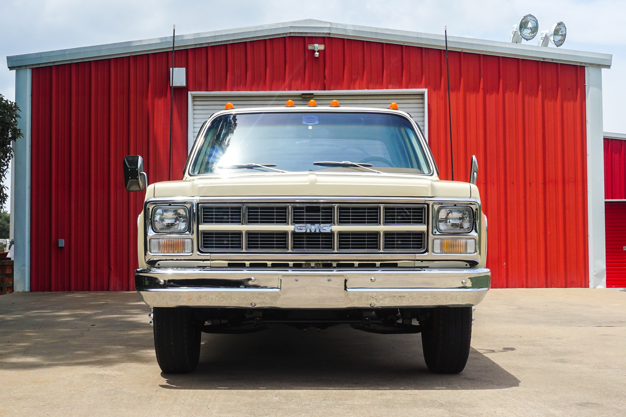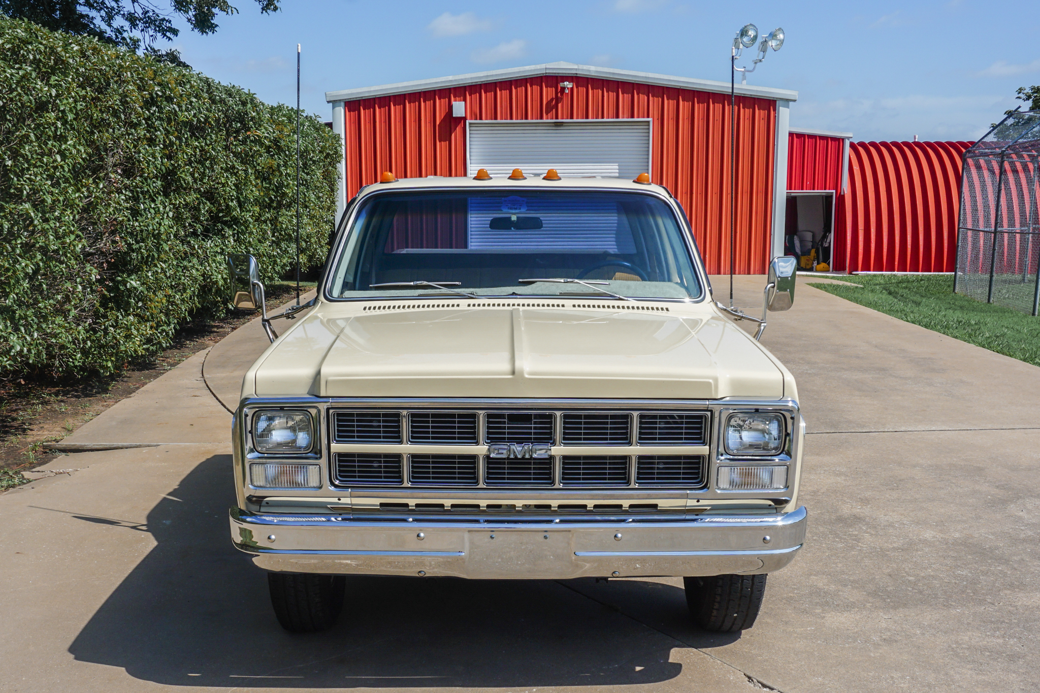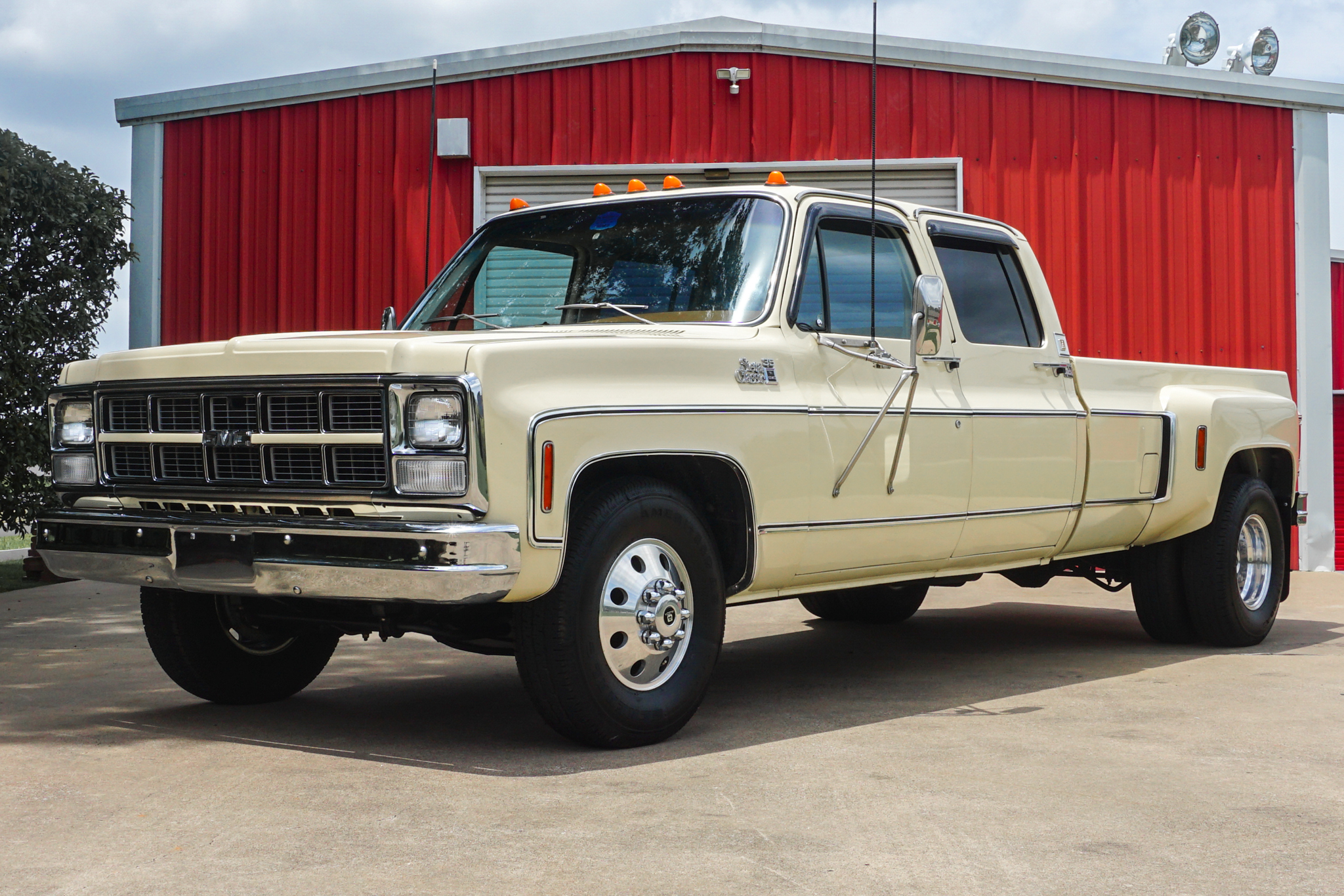 Eight-lug 16″ Alcoa polished-alloy wheels wear General Ameri 550 AS tires that were purchased in 1997. This C3500 features “Big Dooley” fiberglass-reinforced plastic rear fenders and a dual-wheel rear axle.