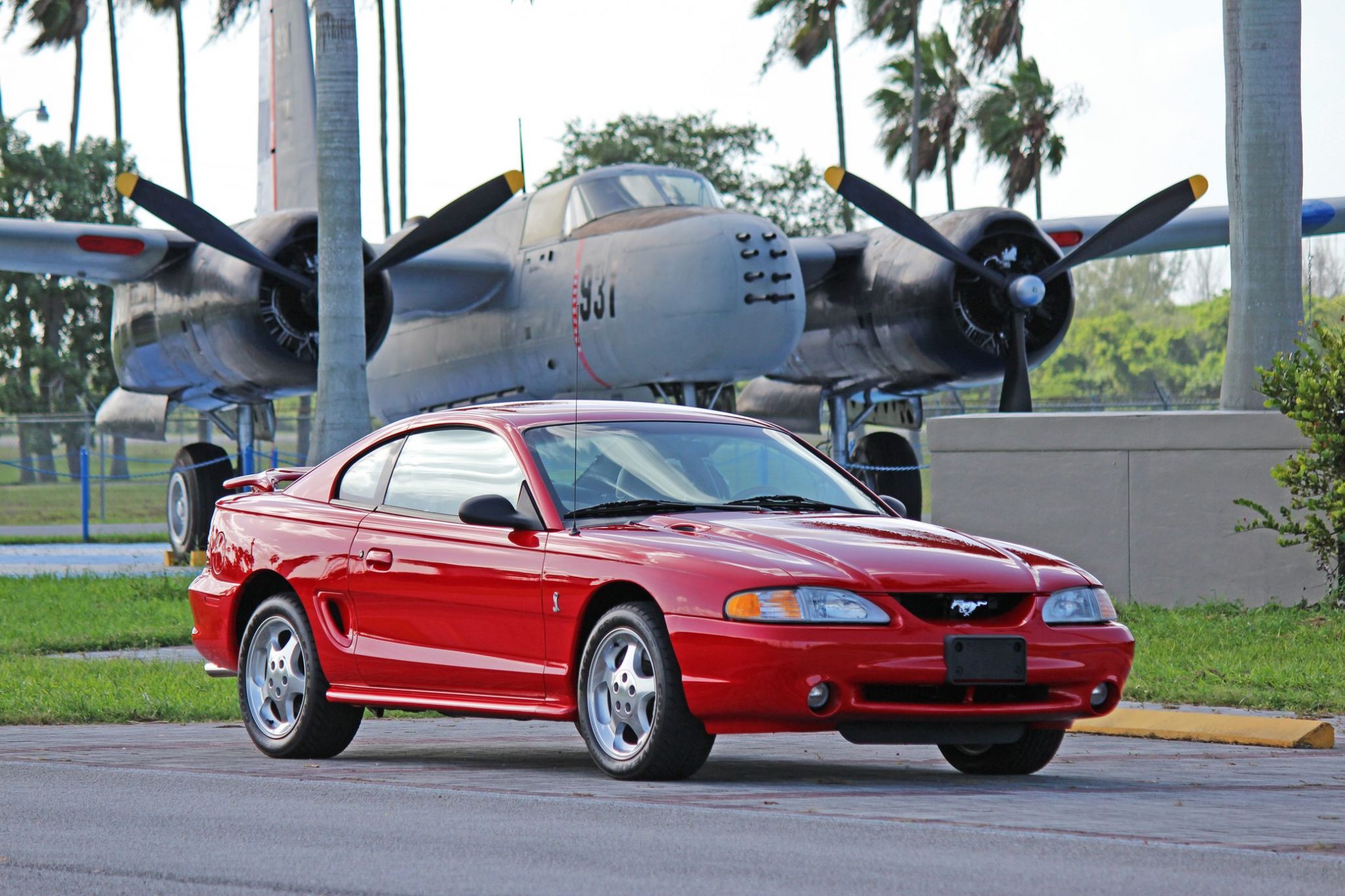 Factory 17″ Cobra wheels wear 255/45 Goodyear Eagle GS-C tires. Spring and damper rates were softened slightly from the contemporary GT, and a thicker sway bar was fitted in the rear to counter understeer. Braking is provided by dual- and single-piston front and rear brake calipers over vented rotors that measure 13″ up front and 11.4″ out back.
