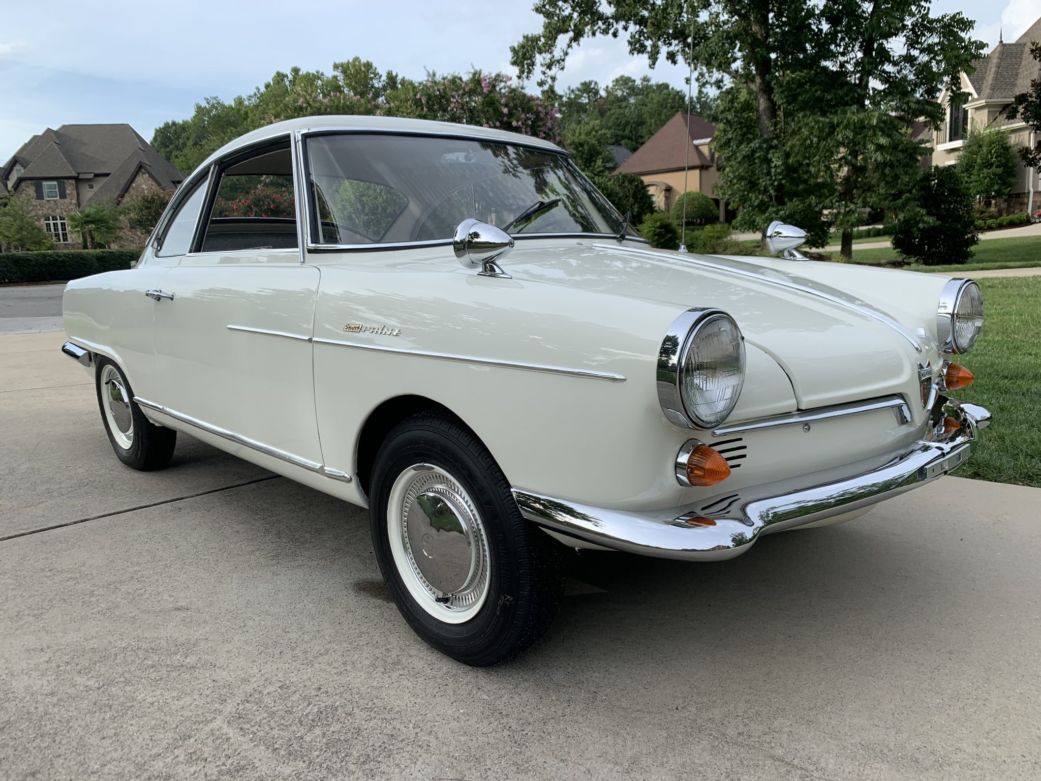 Color-matched 12″ steel wheels with chrome hubcaps wear blackwall tires. The car features independent suspension, rack-and-pinion steering, and front disc brakes. New shocks and bushings were fitted in March 2020, at which time the left front brake caliper was also serviced.
