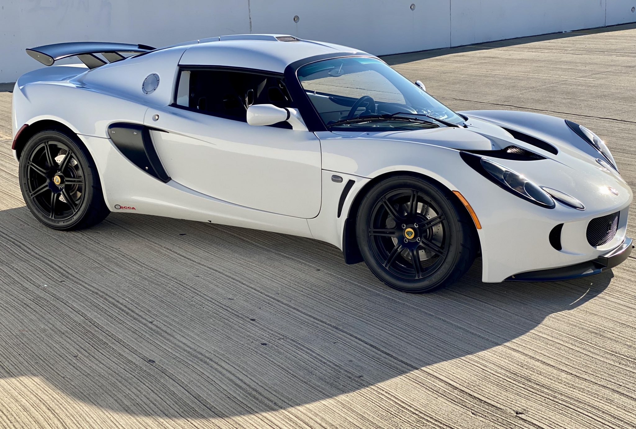 Black 16″ and 17″ wheels wear Yokohama Advan A048 tires. Dual-adjustable Öhlins shocks with remote reservoirs were installed by Fox Valley Motorcars of Chicago, Illinois in 2007, and the rear toe links were replaced in 2018 by the same facility. Two sets of spare SSR wheels with Bridgstone and Hoosier tires are included with the car along with replacement front wheel well liners.
