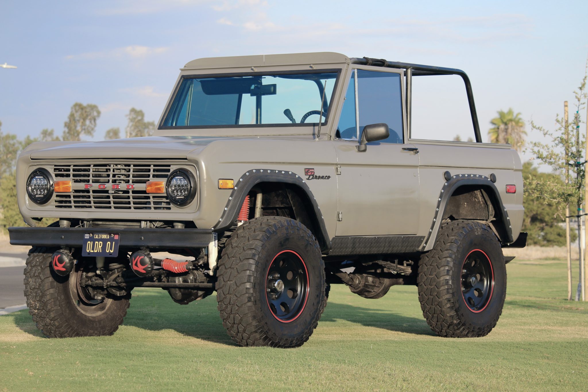 The truck has reportedly been lifted 5.5″ using a kit from Wild Horses to clear 35″ Kpatos FM523 M/T tires on black 17″ American Racing Baja wheels, which are mounted on 2″ spacers. Equipment includes power steering as well as power-assisted front disc and rear drum brakes. A Rampage soft top with tinted vinyl windows is said to be included in the sale.