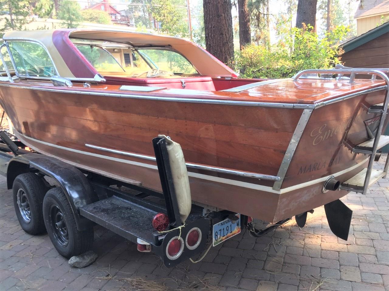 The seller states that the boat has been operated exclusively on Lake Tahoe since the 1960s, and has been garage-stored over winters during his ownership. A crack is noted in in the wood deck above the transom. The seller notes that the boat was rented to a film production company by a previous owner and is said to appear briefly in a scene in The Godfather II. More recently, the boat was awarded second place in the 2014 South Lake Tahoe Boat Show.