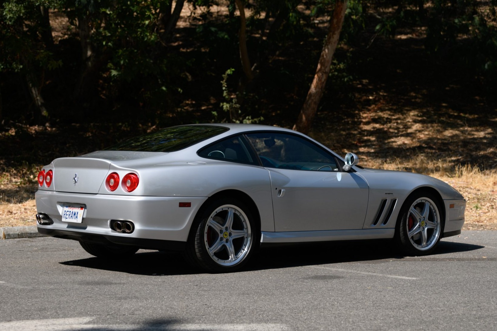 Staggered-width 19” two-piece factory wheels feature prancing horse center caps and are wrapped in Michelin Pilot Super Sport tires measuring 255/35 up front and 305/30 out back, which were mounted in 2017. Stopping power is provided by red-painted calipers that clamp cross-drilled rotors at all four corners. The car is equipped with the factory-optional Fiorano Handling Package, which included stiffer front and rear springs, an uprated rear anti-sway bar, and a re-tuned power steering setup.