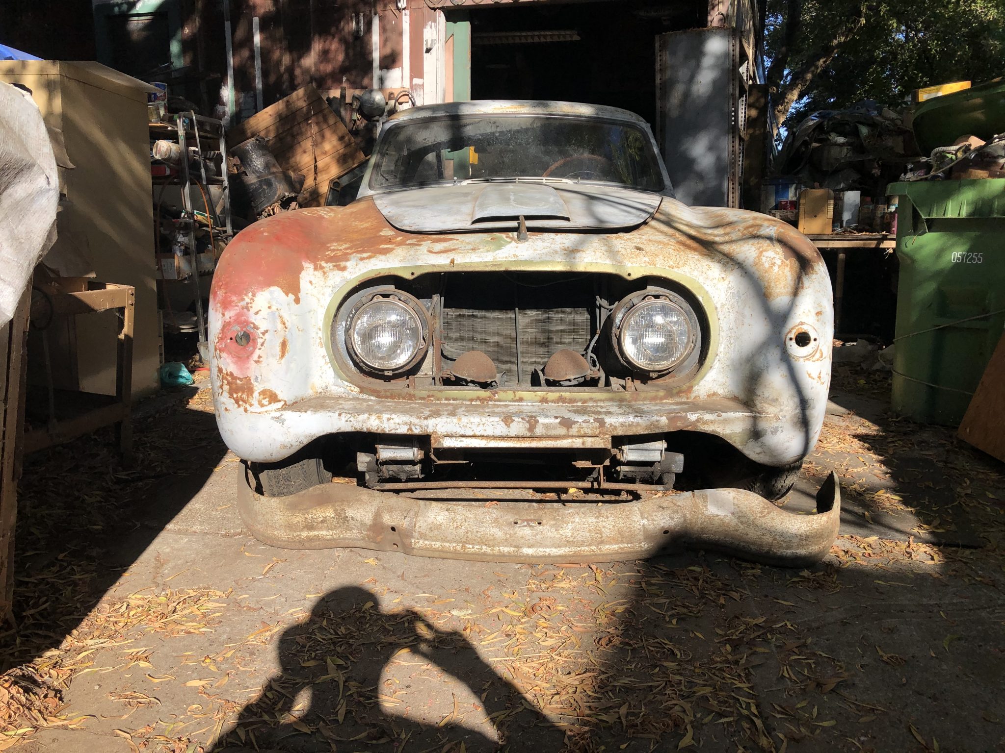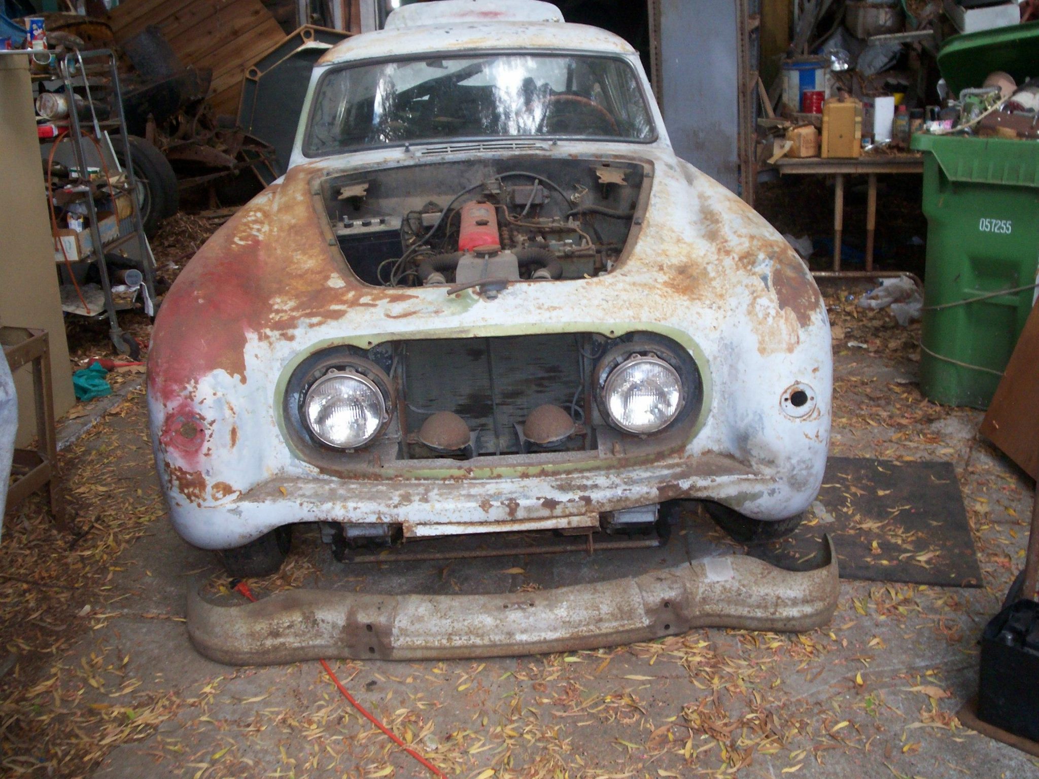 The Nash-Healey utilizes a box-section frame, front trailing-arm suspension derived from the Healey Silverstone, and a coil-sprung solid rear axle. Steel wheels are wrapped in older whitewall tires, and four chrome hubcaps will accompany the car.
